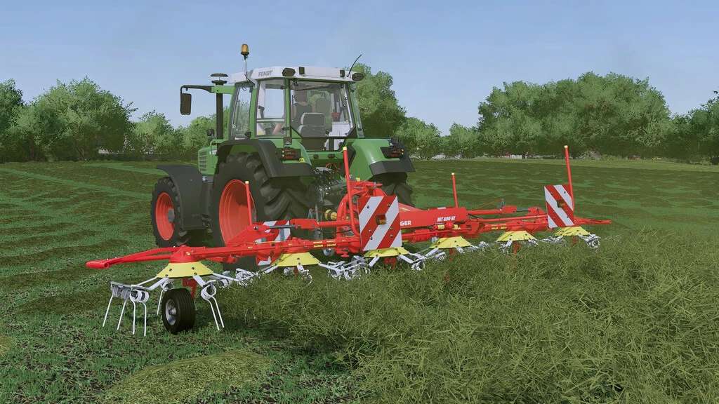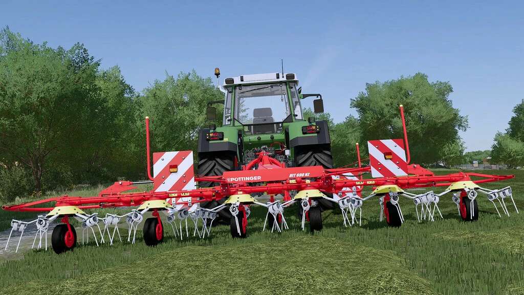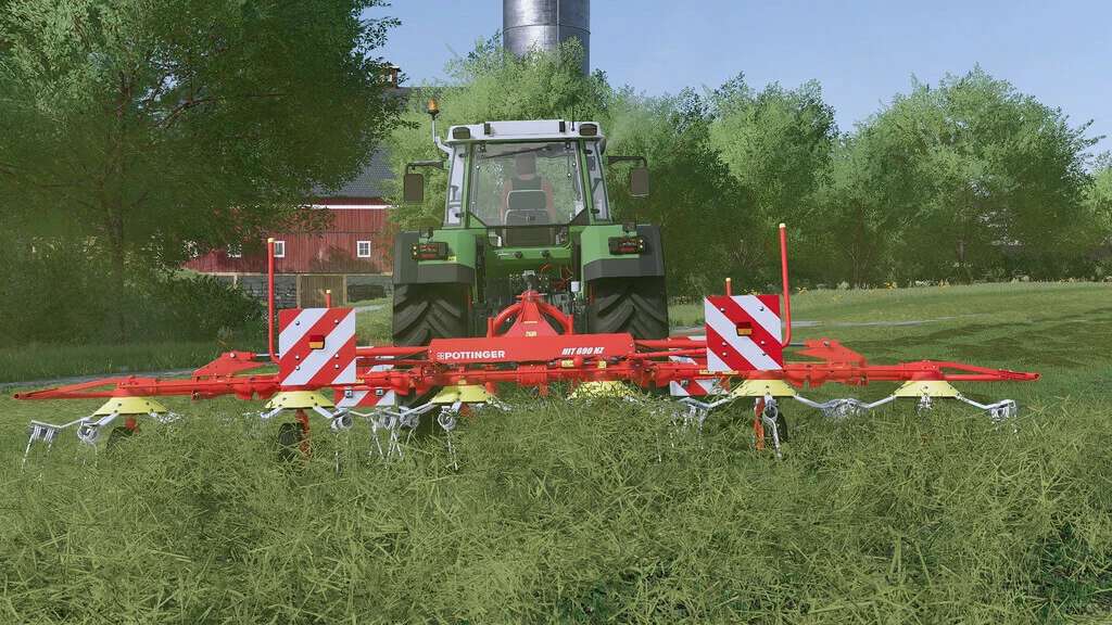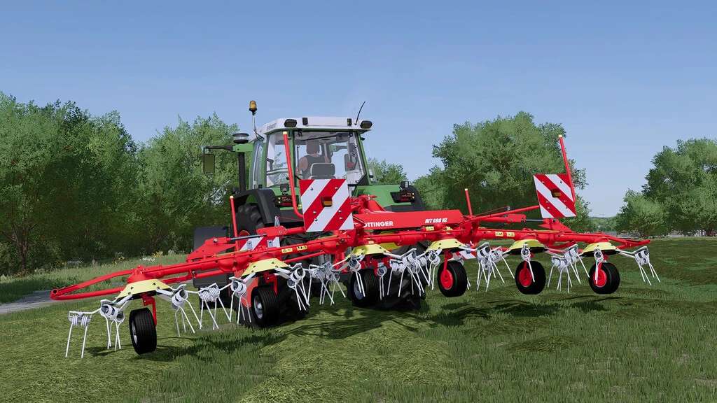 The Pöttinger HIT 690 N or HIT 690 NZ is a tedder which, with a working width of 6.85 m, is well suited for medium-sized farms.