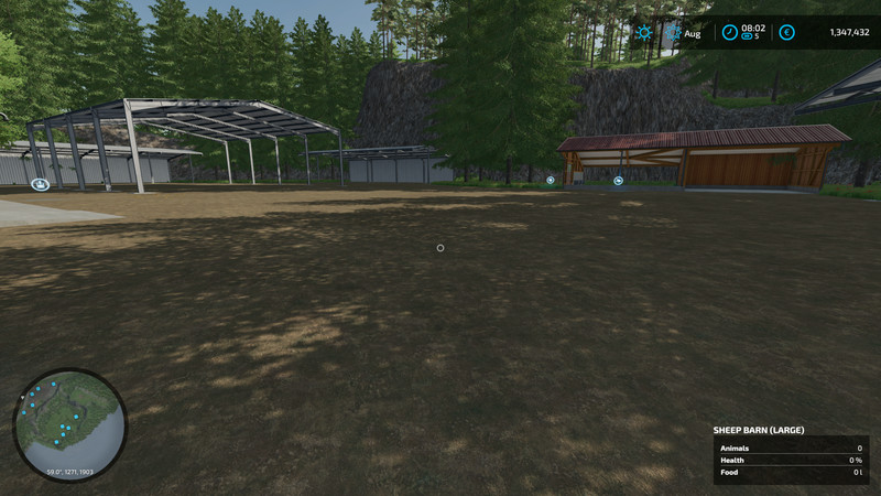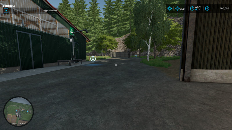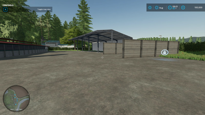 Riverview is work in progress however the map is now in a fully functional state with multiple production buildings avilable to sell your goods at or purchase. There are 47 fields of which some are pastures. Your starting land has a large cow barn, house, sheds, silage clamp as well as a silo with plenty of open space for more placeables. There is a second farm that has two large Pig barns and a large Chicken barn, silo and some sheds.