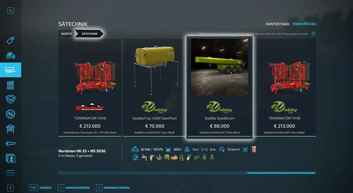 ATTENTION: the seed machine wants liquid fertilizer instead of mineral fertilizer in the tank 😉