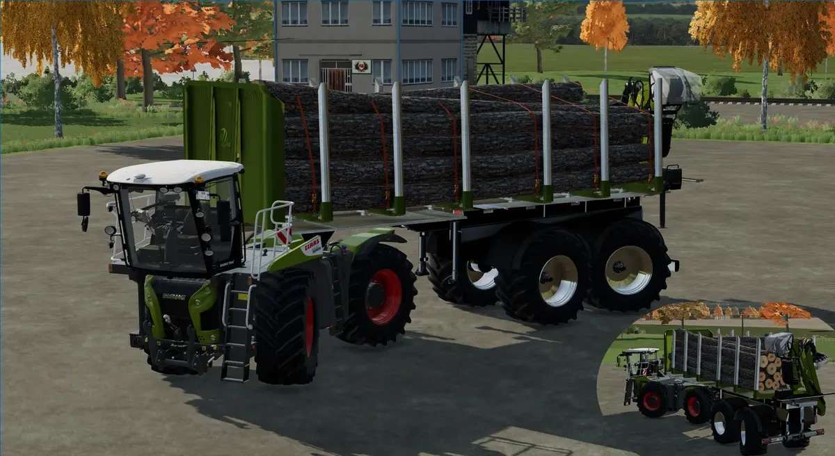 WoddShuttle Changelog 2.0.0 – Stabilization of the chassis when fully loaded up to 30 km/h when cornering (conditionally in the semi-trailer due to the very high center of gravity) – dynamic flashing light implemented on the semiTrailer – the Wood Trailer can now also be used with other tractors – Underrun protection on the trailer – other tire manufacturers added, 600 55 R26, Vredestein, Michelin, Trelleborg, BKT.