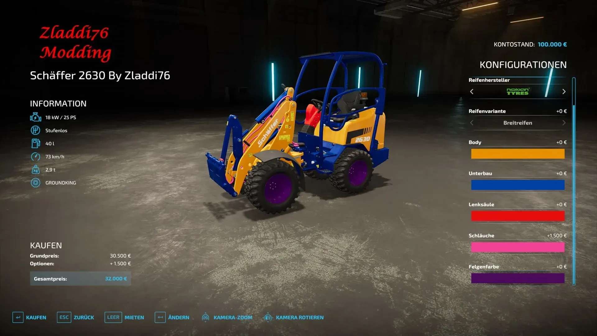 The Schäffer 2630 Multicolor Nokian Bereifung Beacon mehr PS in Farming Simulator 22 is a compact yet powerful front loader, upgraded with additional horsepower for enhanced performance. This version features Nokian tires, providing superior traction and stability, especially on rough or muddy surfaces. The integrated beacon light ensures better visibility for safer operation on the farm. With Multicolor customization, players can personalize the loader’s appearance to match their fleet. The Schäffer 2630 is perfect for handling small to medium tasks with increased efficiency and style.