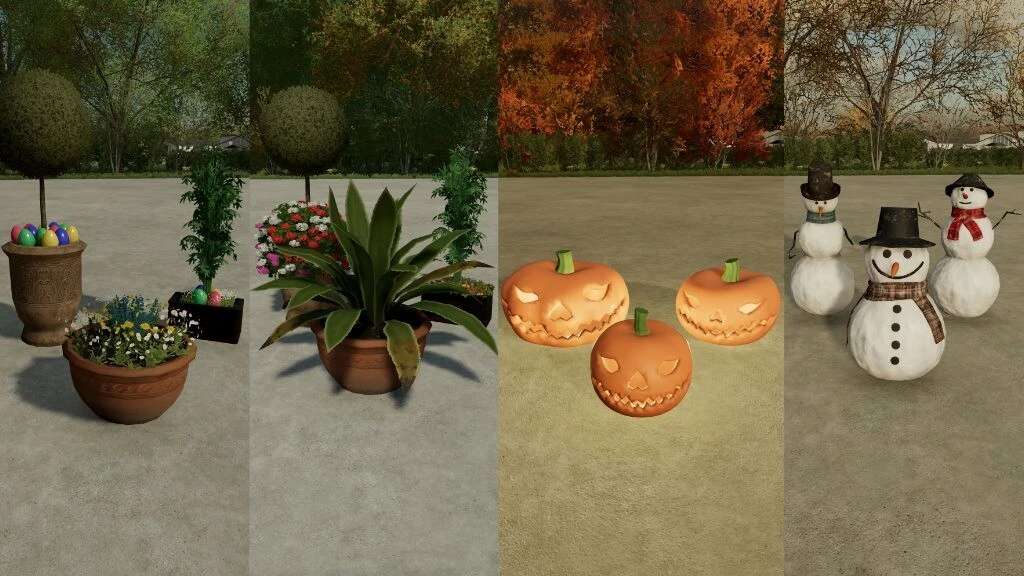 In spring, for example, you can see spring flowers, in summer lush green plants, in autumn Halloween pumpkins and in winter snowmen.