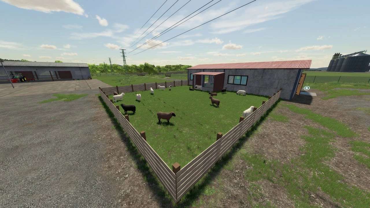 A custom sheepfold for sheep, designed with an individual approach, is an extended home for your furry charges. It is ready to accommodate your entire livestock, namely up to 500 sheep while providing convenience and compactness. Next to this livestock complex, you will find 24 pallets that are ready to be filled with wool obtained from your animals.