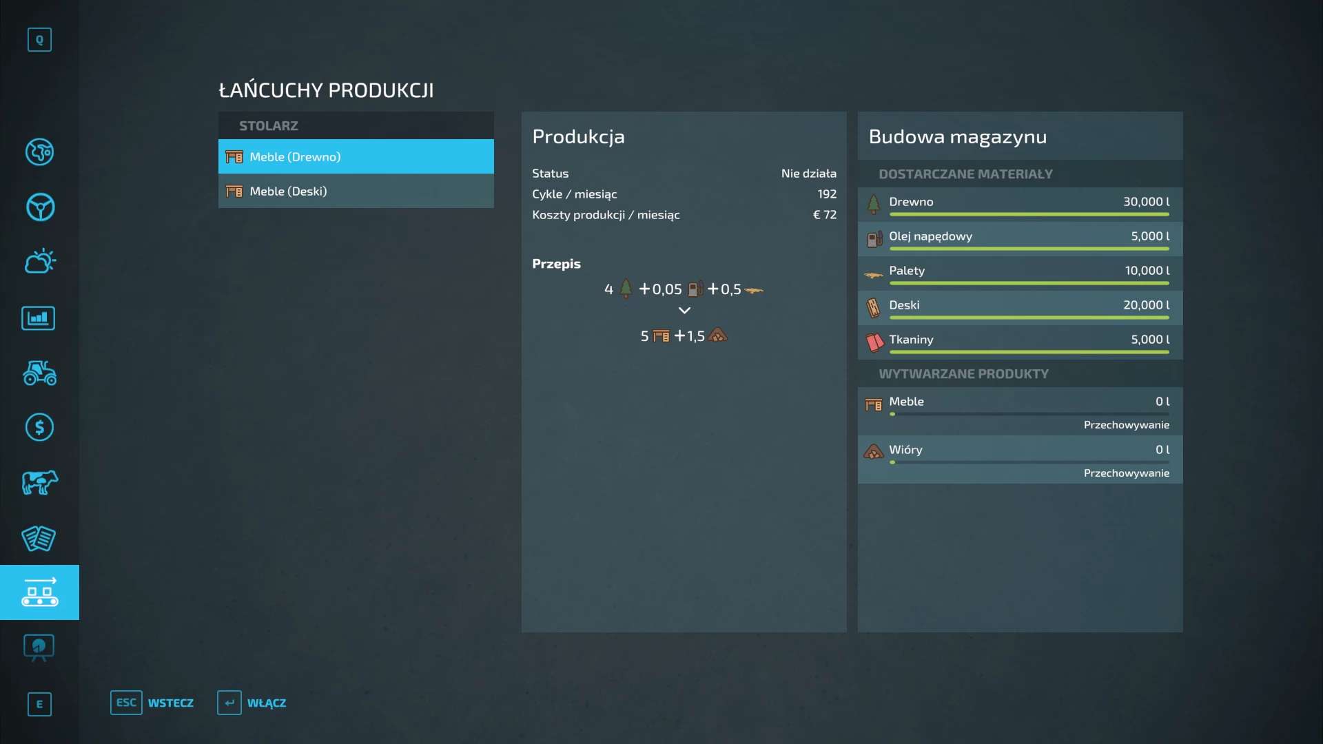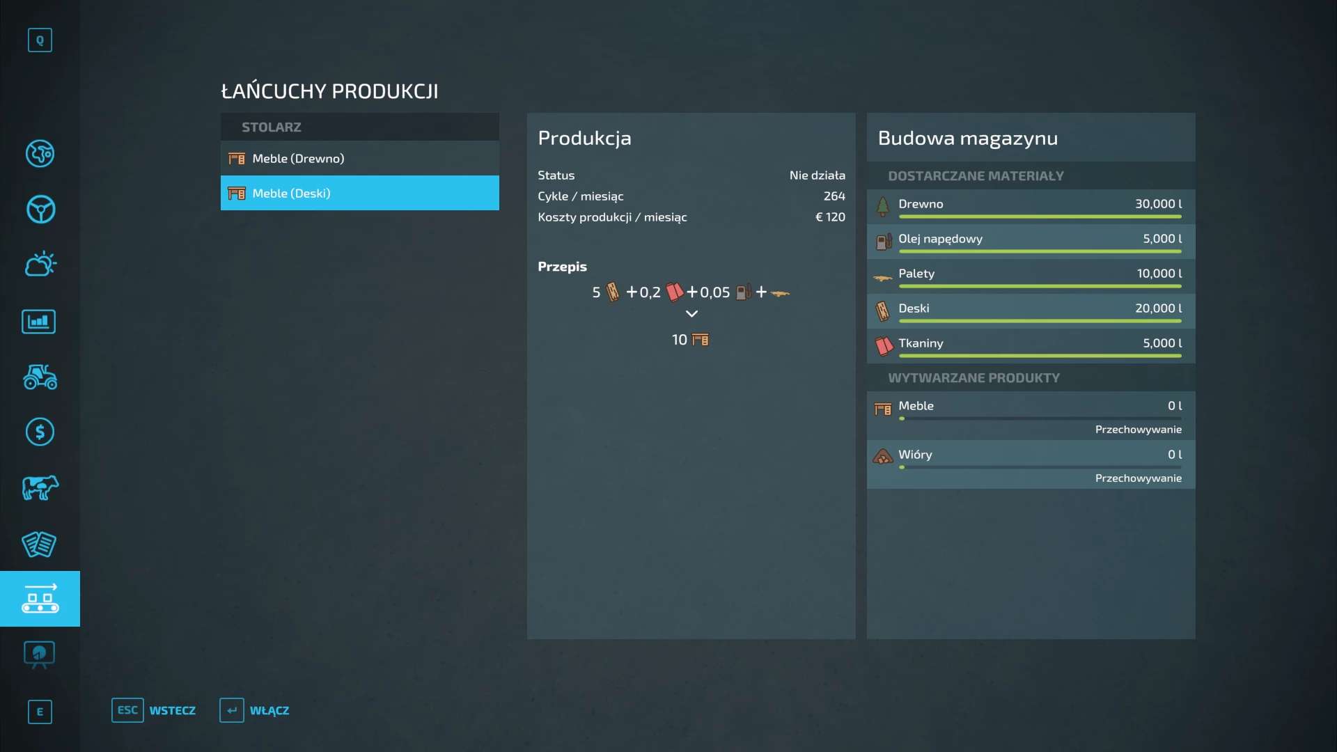 For proper operation, the factory needs products such as: Wood, Boards, Fuel, Fabrics, Pallets
