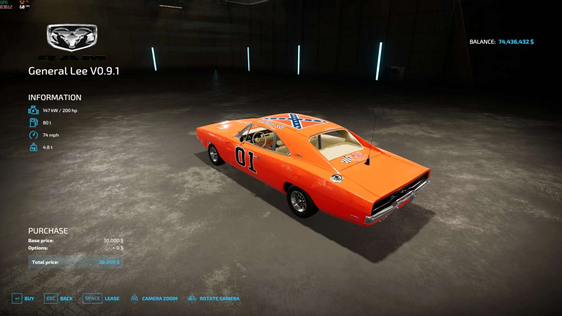The General Lee updated from FS19 Rental Man edition.