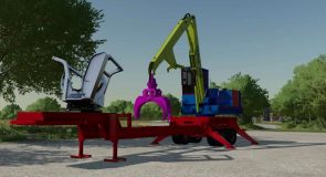 It can be used for loading logs on trailer as well. It is knuckleboom loader type. It allows you to load whole trailer with long tree logs from behind the trailer.