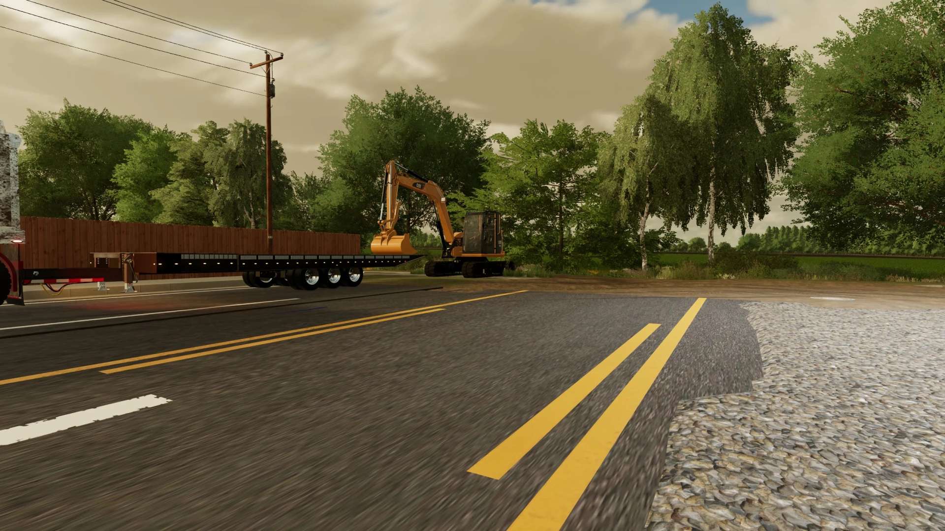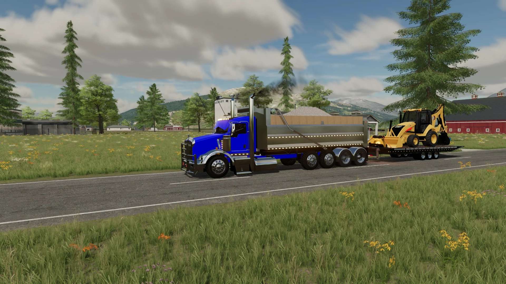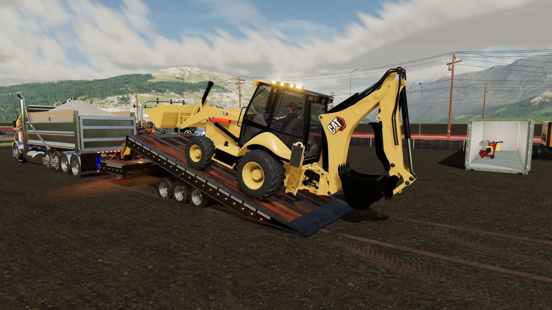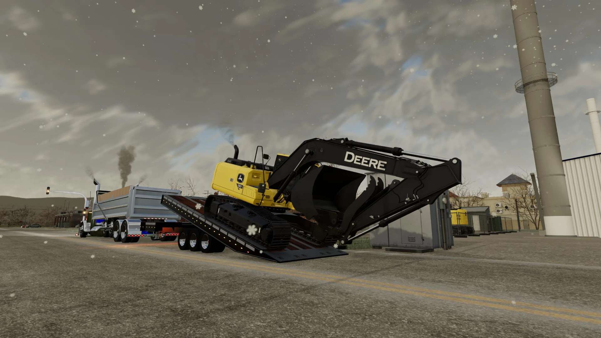 This is my build of a Trail King TKT50LP Tilt Deck trailer. The trailer is rated for 50,000lbs in this triple axle configuration. Its not perfect, but it functions pretty well and I think I got it pretty close to the real thing. Once connected, you can adjust the height of the hitch with mouse controls. Please note, this trailer functions similar to the real life trailer. The tilt is not powered by hydraulics, the hydraulic cylinders on the trailer are just shocks to control how quickly the deck moves. To tilt the deck down, you must unlock it by hitting the fold function. That will allow the deck to tilt back if there is slight pressure applied to the back of the trailer deck. Once the equipment is driven up on the deck, the deck will tilt back forward. Once the deck is tilted back to flat you can hit the fold function again to lock the trailer deck. This mod, like most of my mods is a WIP. I add stuff as I think of them and I am constantly tweaking and updating it. As always, let me know if you have any suggestions or feedback.