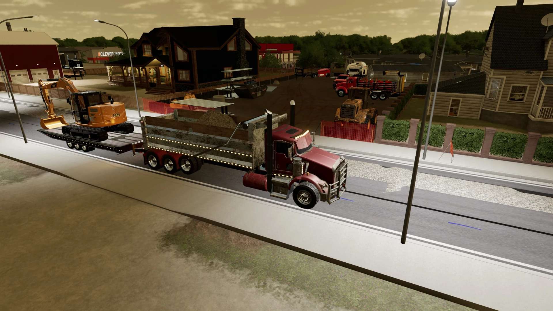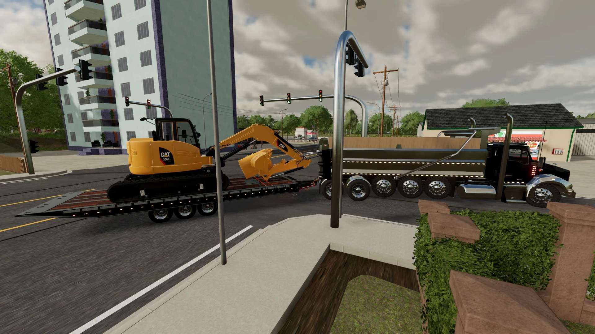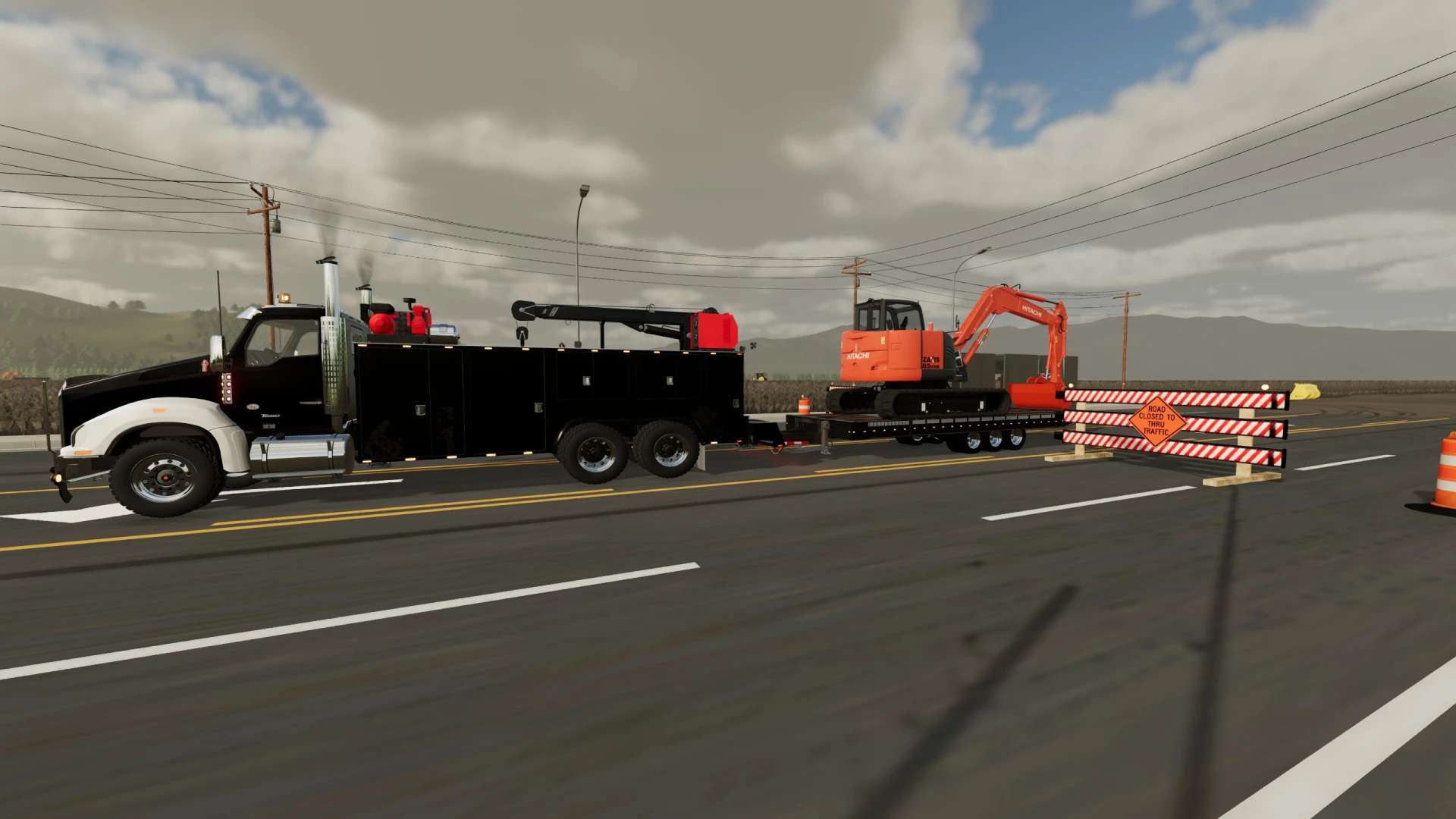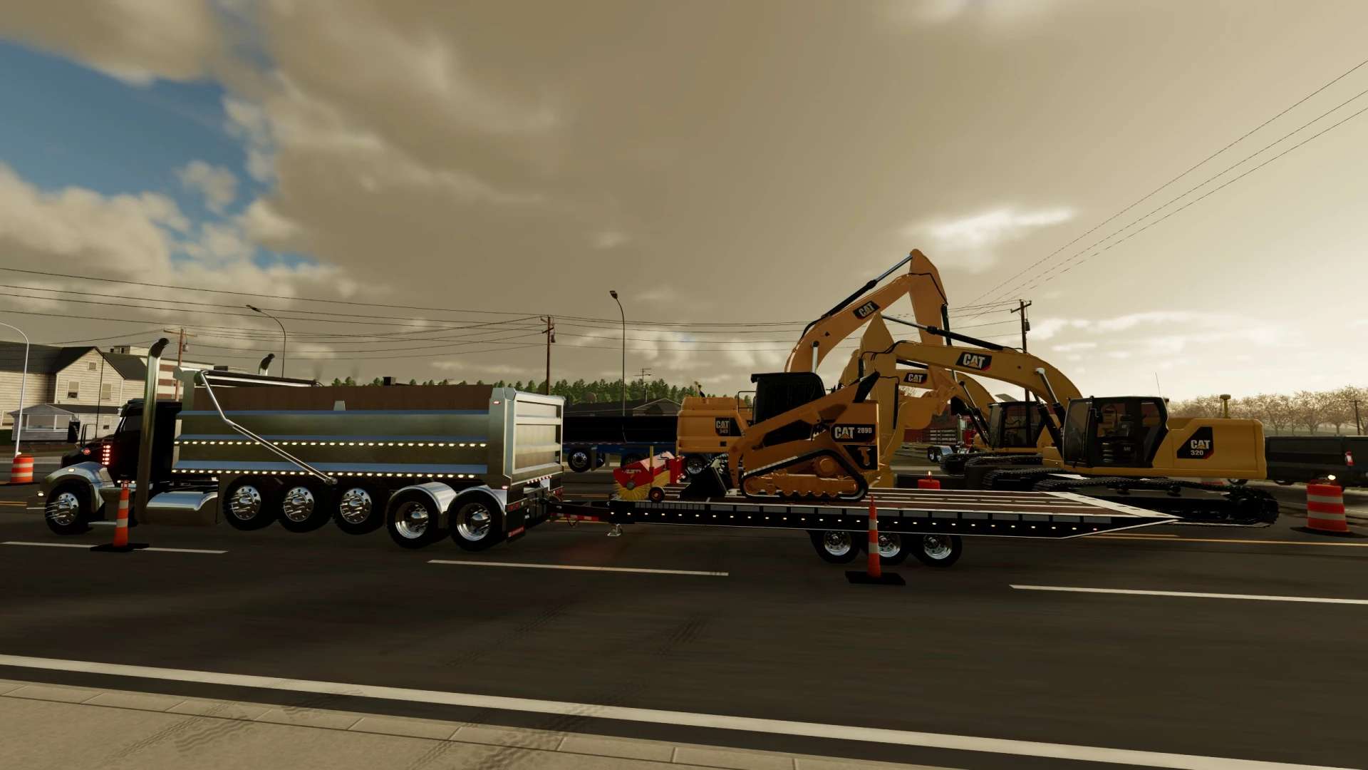 This is my build of a Trail King TKT50LP Tilt Deck trailer. The trailer is rated for 50,000lbs in this triple axle configuration. Its not perfect, but it functions pretty well and I think I got it pretty close to the real thing. Once connected, you can adjust the height of the hitch with mouse controls. Please note, this trailer functions similar to the real life trailer. The tilt is not powered by hydraulics, the hydraulic cylinders on the trailer are just shocks to control how quickly the deck moves. To tilt the deck down, you must unlock it by hitting the fold function. That will allow the deck to tilt back if there is slight pressure applied to the back of the trailer deck. Once the equipment is driven up on the deck, the deck will tilt back forward. Once the deck is tilted back to flat you can hit the fold function again to lock the trailer deck. This mod, like most of my mods is a WIP. I add stuff as I think of them and I am constantly tweaking and updating it. As always, let me know if you have any suggestions or feedback.