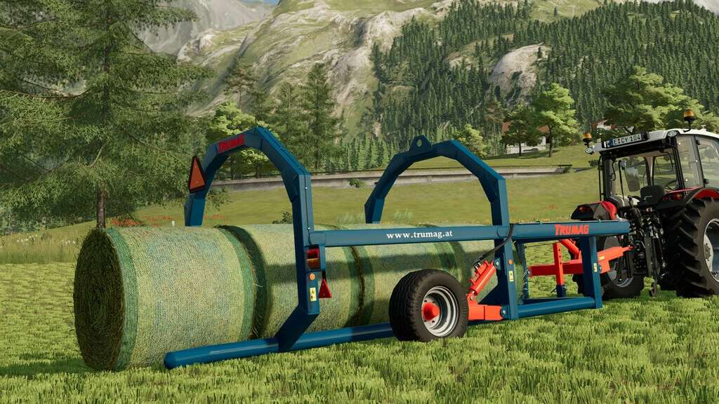 The RBTW round bale transporter from Trumag picks up round bales, wrapped or unwrapped, with a diameter of 1,10 m to 1,80 m.