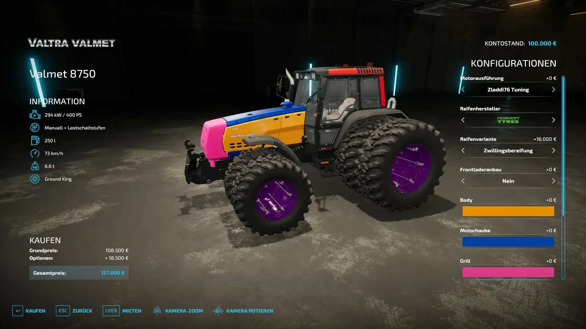 Valtra Valmet 8750 Multicolor Nokian double tires Beacons 400 HP repair interval increased.