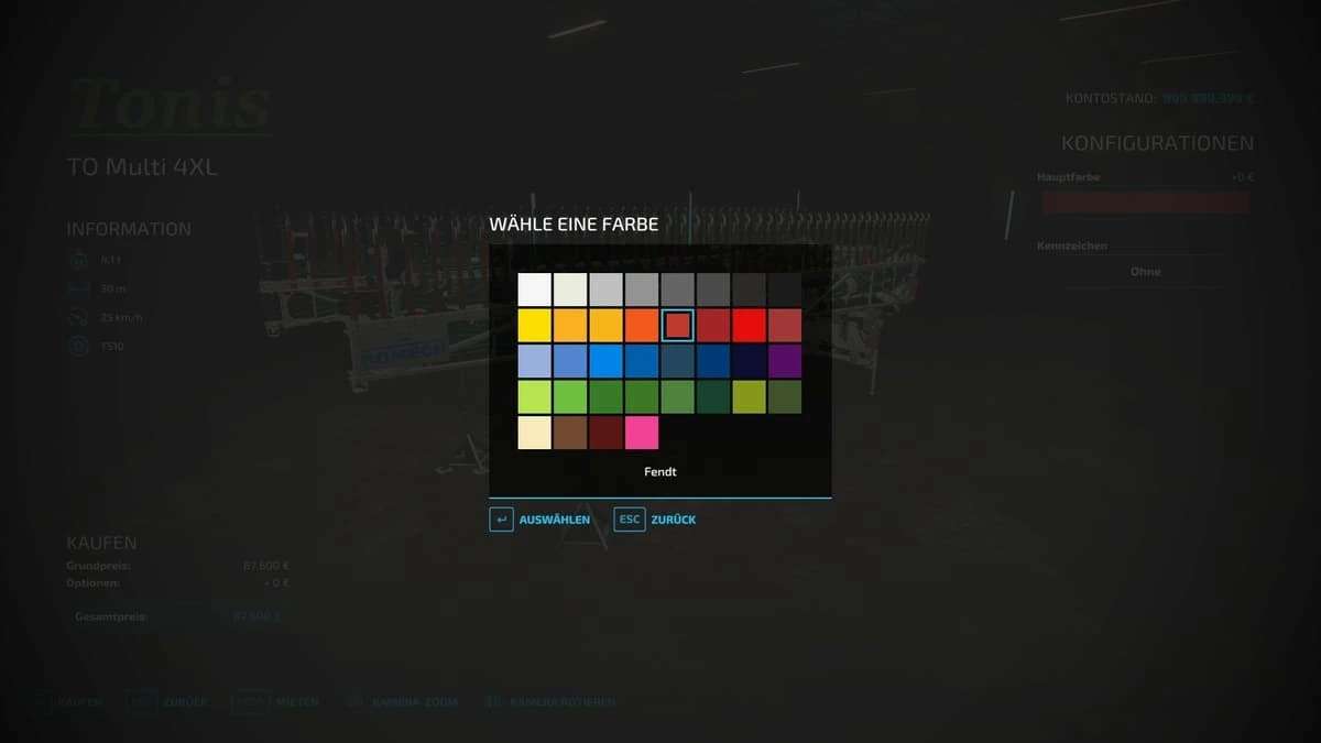 Color and capacity selection (from version 1.1 with liquid manure sensor)