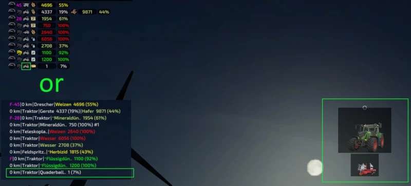 The VehicleInspector is designed to give you a quick overview of your vehicles. What are they doing/what do they have loaded/which ones are active etc. etc.