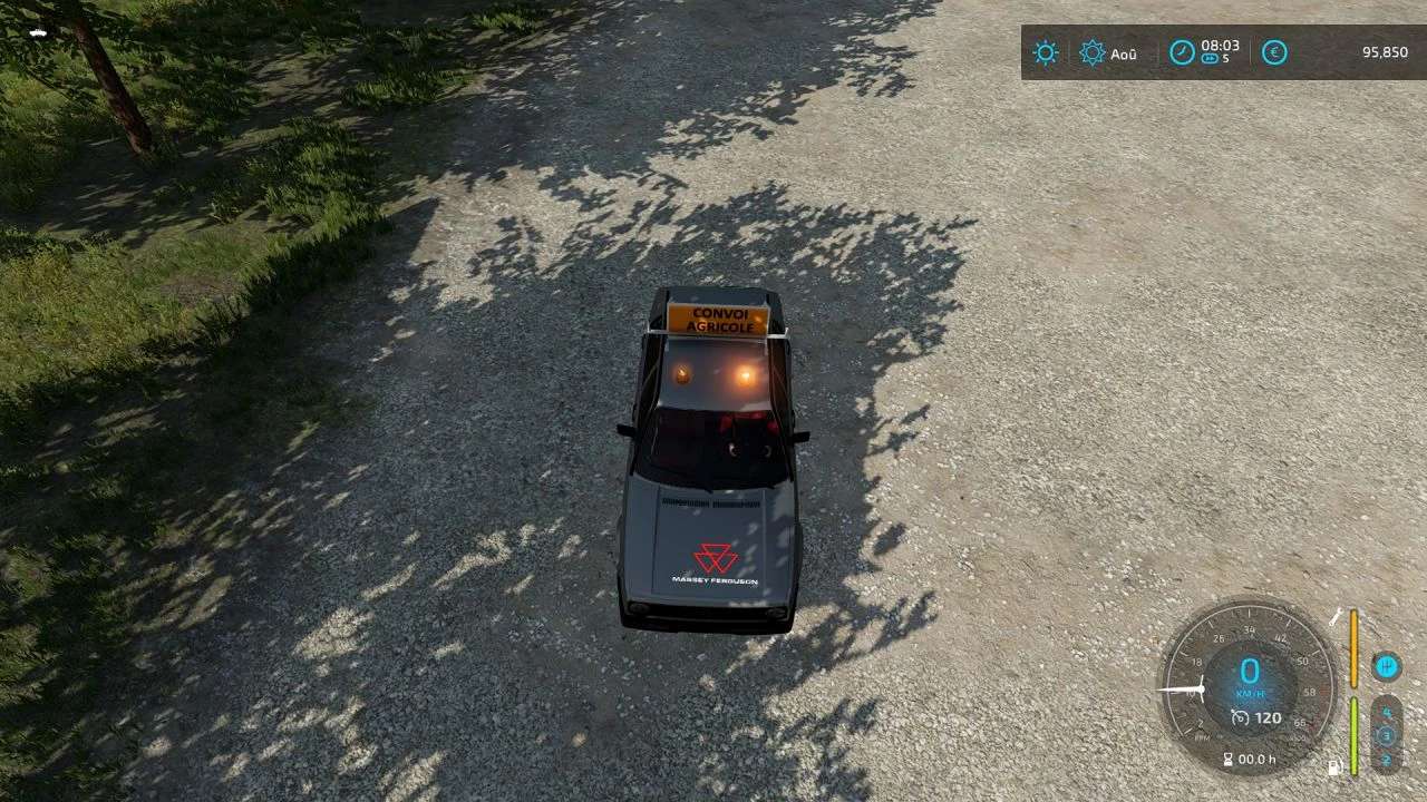 I added a massey ferguson logo, two revolving lights on the roof, an agricultural convoy plate.