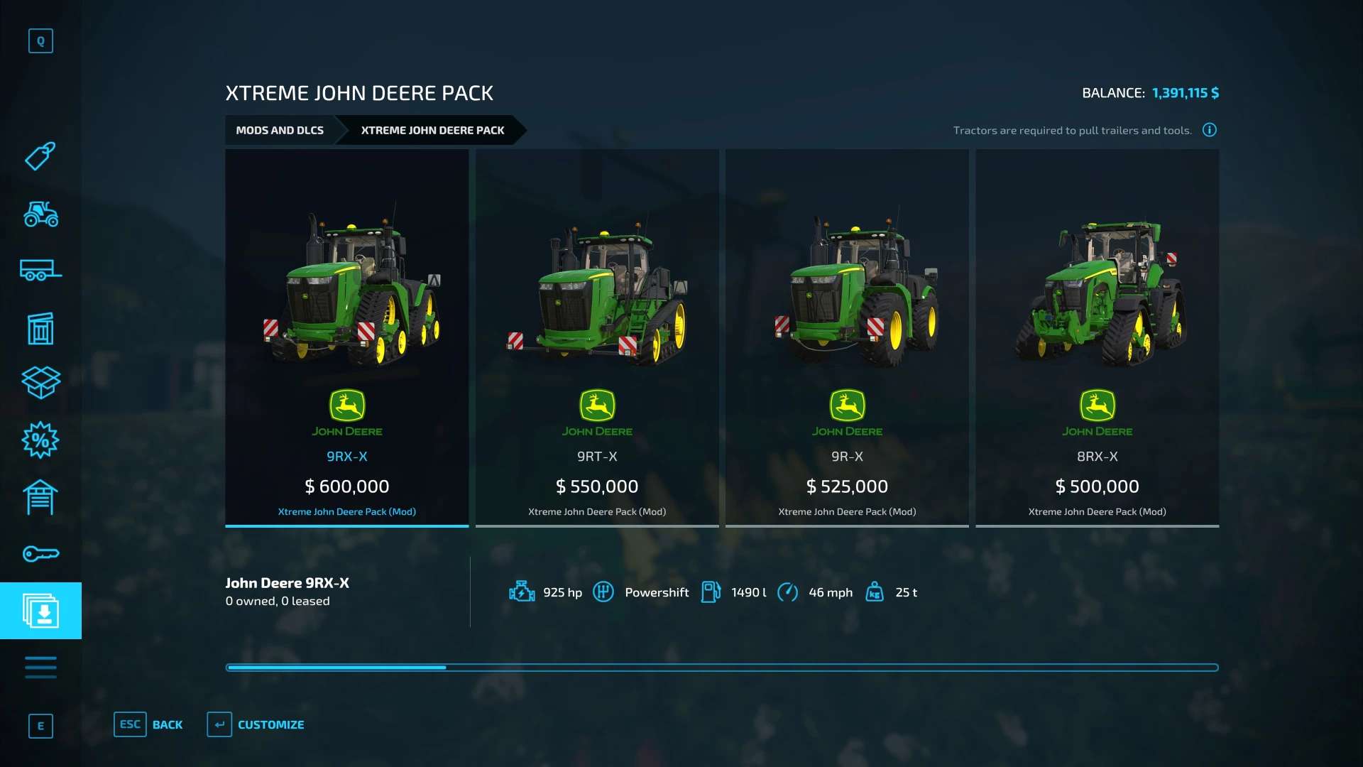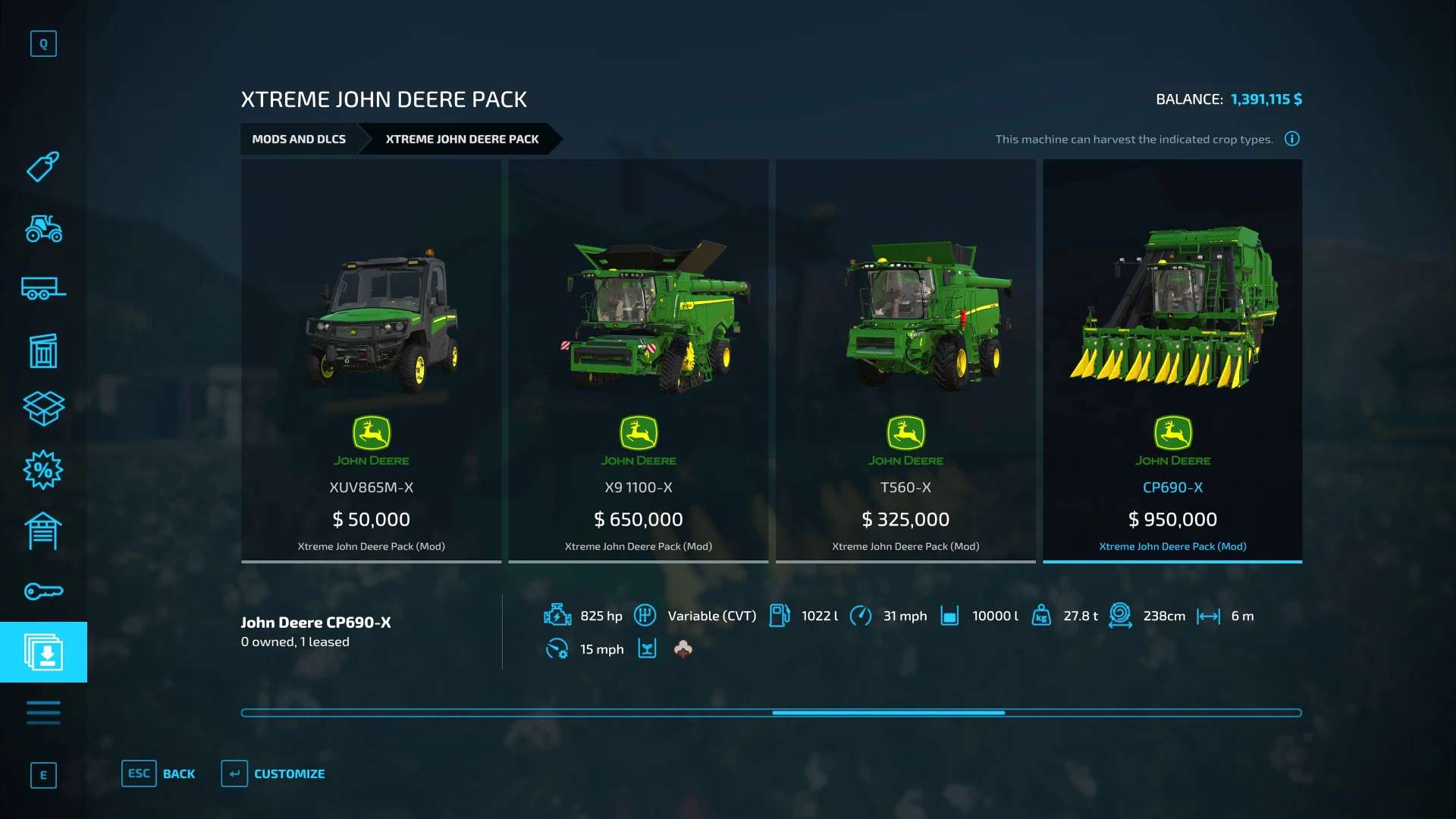This mod pack for Farming Simulator 22 features your favorite John Deere machinery but now enhanced with eXtra power, eXtreme speed and eXciting performance!