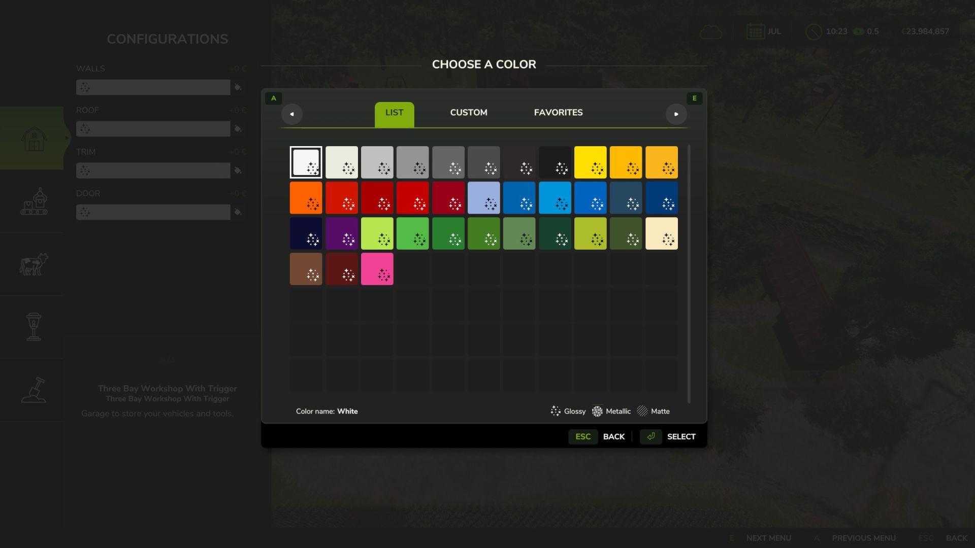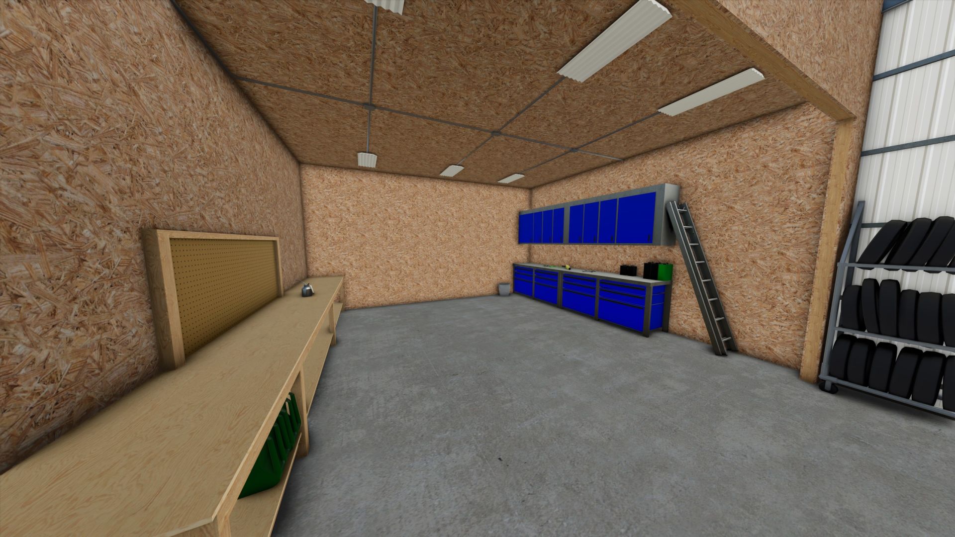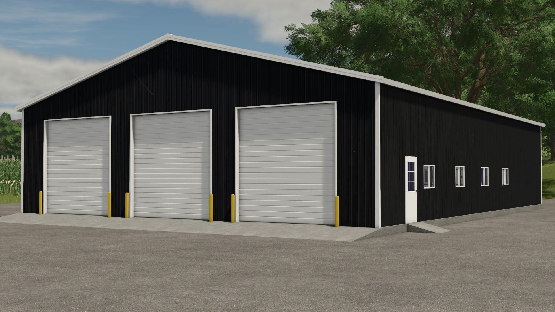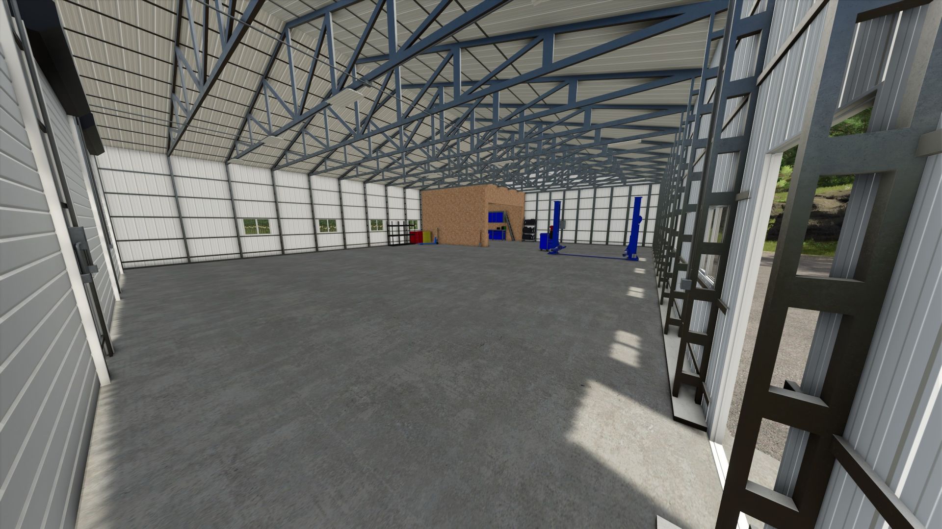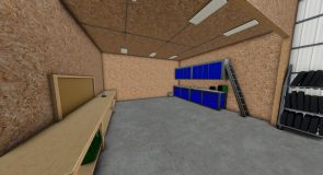 The 3-bay shop provides ample space to store and maintain your equipment in Farming Simulator 25. With three spacious bays, it provides convenience and functionality for organizing your agricultural machinery.