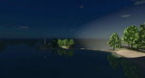 A lighthouse guides visitors from afar to the island, even in the dark, where they are welcome to stay at the local hotel.
