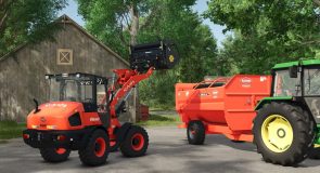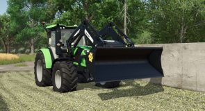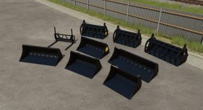 This modpack includes some of the front loader implements, such as a pallet fork, the H-series buckets and the Multigrab HD grapple buckets.