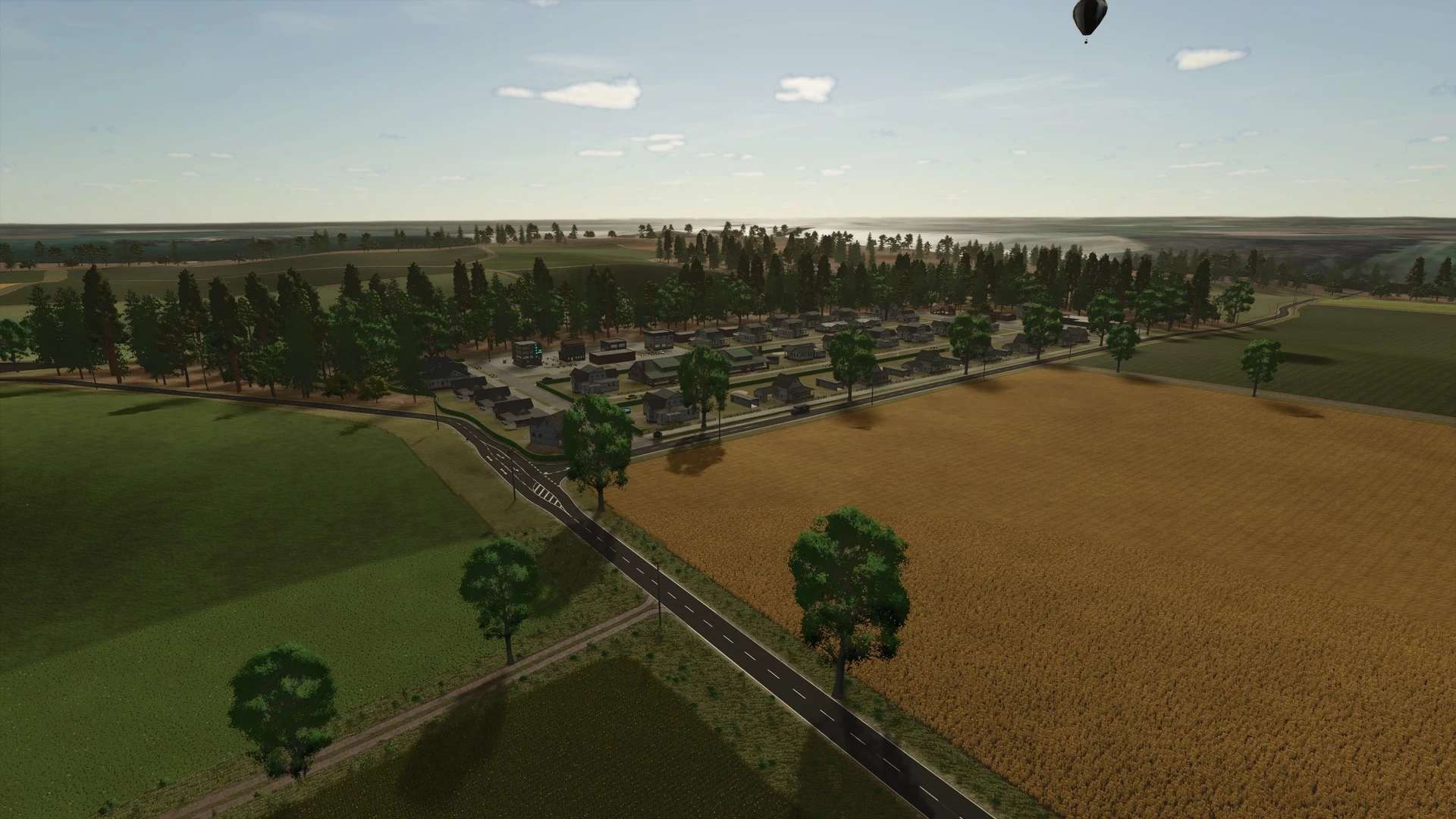Long field paths and narrow village streets ensure realistic transport.