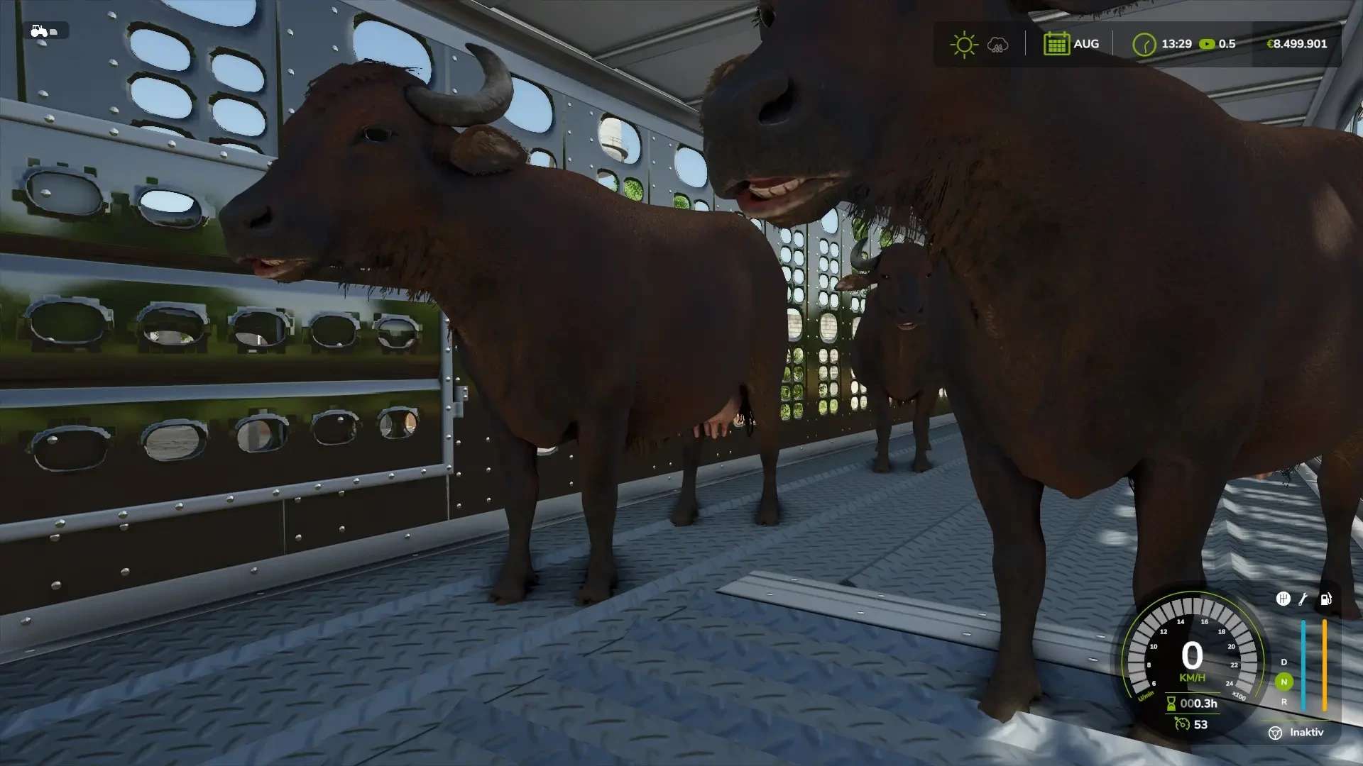 Animal transporter for 100 cows, 250 pigs, 400 sheep, 400 goats, or 1000 chickens. The chassis and rims can be chosen in a choice of colors.