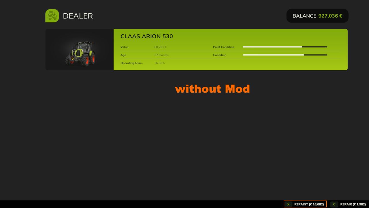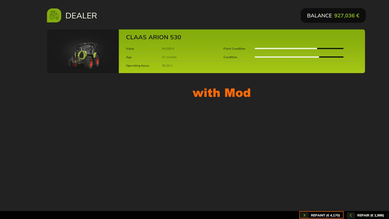Auto repaint all owned vehicles/tools at ~00:00 hour and ~12:00 hour and reduces the costs to 25%. (not missions vehicles)
