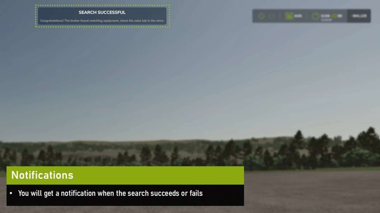 If/when the broker finds a match, you will receive a notification in the game, and the equipment will be available for purchase in the Sales tab in the equipment shop.