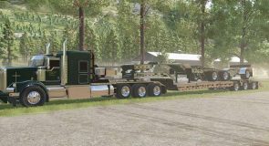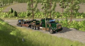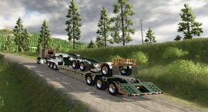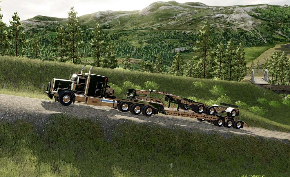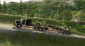 FS25 BWS 55T beaver tail trailer with jeep and booster. Uses chain binders instead of straps. Has options with Interactive controls, attachable jeep, attachable booster, signs, flags and strobes.