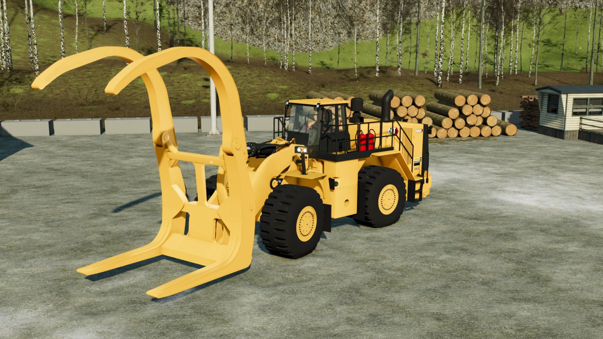 Millyard- Heavier machine made to unload log trucks . Has an add-on for a beacon.