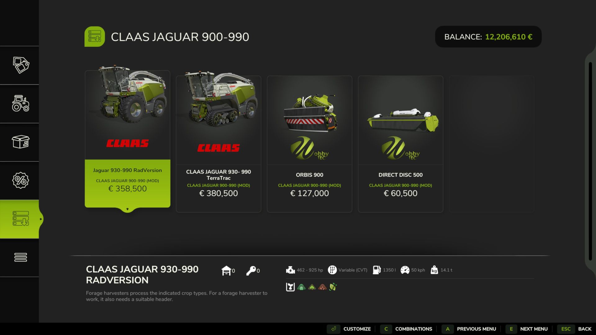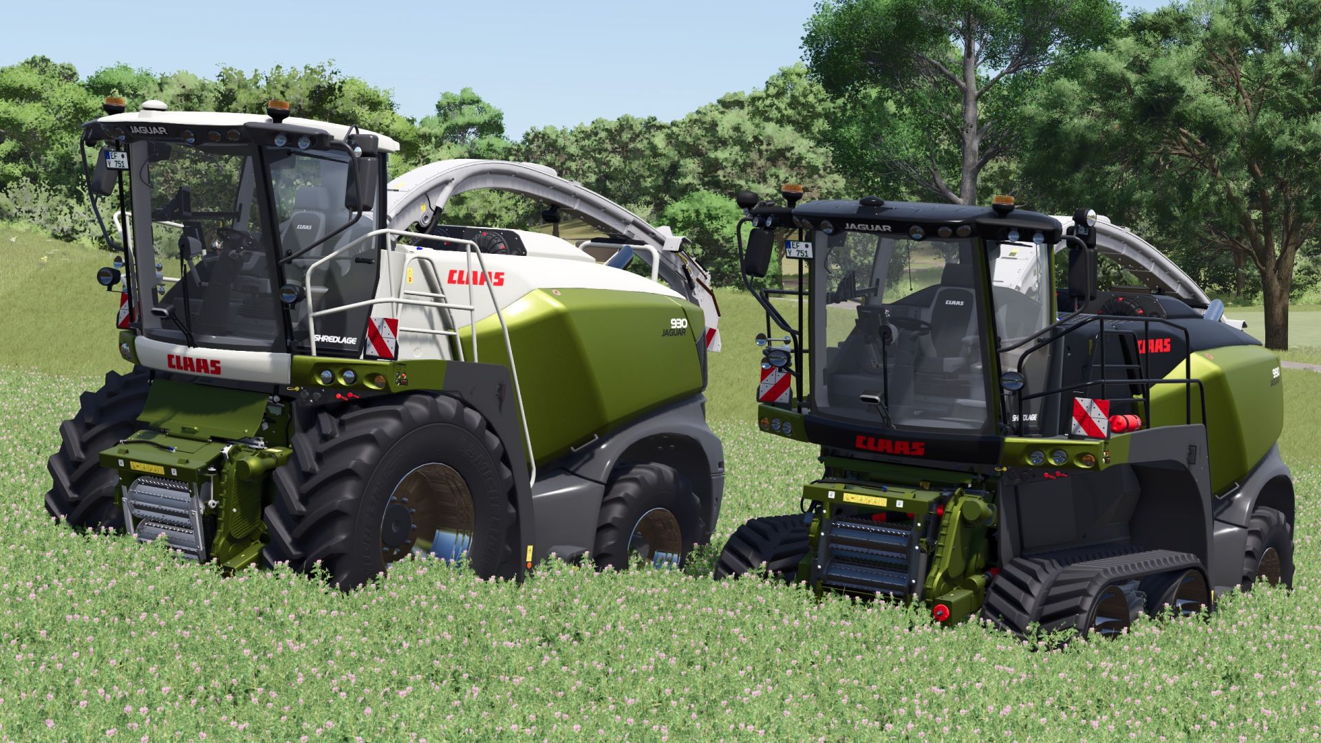 A CLAAS Jaguar Series 930 -990 as wheel and Terra Trac version with Orbis 900 and Direct Disc 500 and color selection