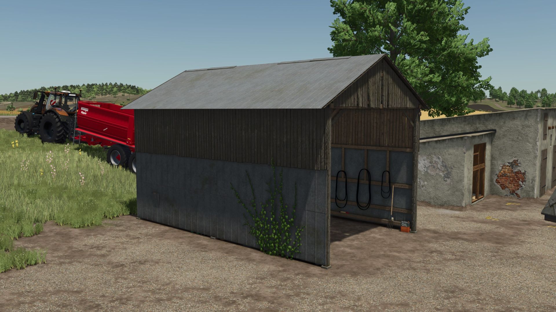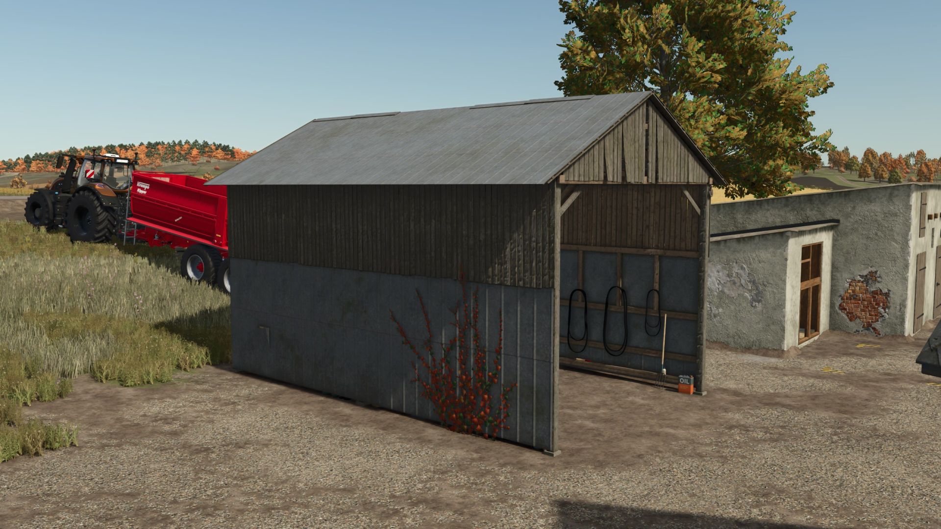 A hangar in which you can park your combine harvester.