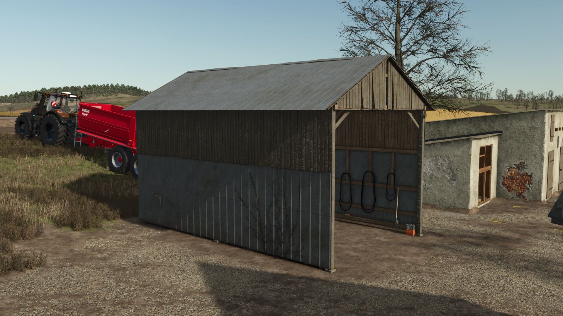 A hangar in which you can park your combine harvester.