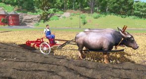 There are gray cattle, water buffalo, draft horse in the pack. It works with the old mode, if you press the w button once it goes 6.5km/h but if you press the w button twice it goes 12km/h. This also works in reverse.. It is very important that after attaching the equipment, press the G button to control the animal. Its control is like that of a car. You will find the three animals in the car category. The driver can whip with the B button. For plows, you only need to lower the plow with the V button and that’s it. Other animations are done with the B button.For devices, don’t forget to set the configuration to horse mode or buffalo and cattle. It is important for proper operation.If you haven’t read this description, it’s possible that the animal won’t work properly. But if you do as I wrote, it will work perfectly.