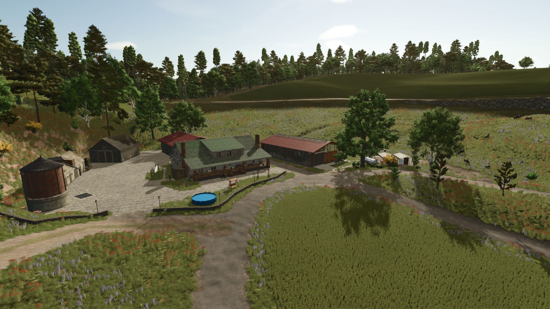 The map is extremely steep in many places, which makes it particularly challenging. About 80% of the region is actually covered with forest, and I have converted some of these areas into meadows. This means that these areas are entered as fields and can be processed by the AI, but there are INTENTIONALLY only grass missions, but you can plant all the fruits from the standard game, the growth calendar has not *yet* been adjusted.
