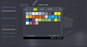 Color selection for main color, design color, frame, cover, drawbar, scratching floor, silage canister, tarpaulin, lettering and rim color.
