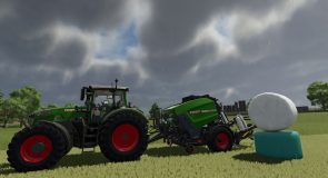 Pressers work excellent with mods (Rounder Wrapped Round Bales – this mod replaces the appearance of standard round bales with a more round, wrong and realistic shape after the bale was packed.) And (Switchable Bale Wrappers for Balers – this script allows you to enable and disconnect A wrap on a press collection, used for grass).