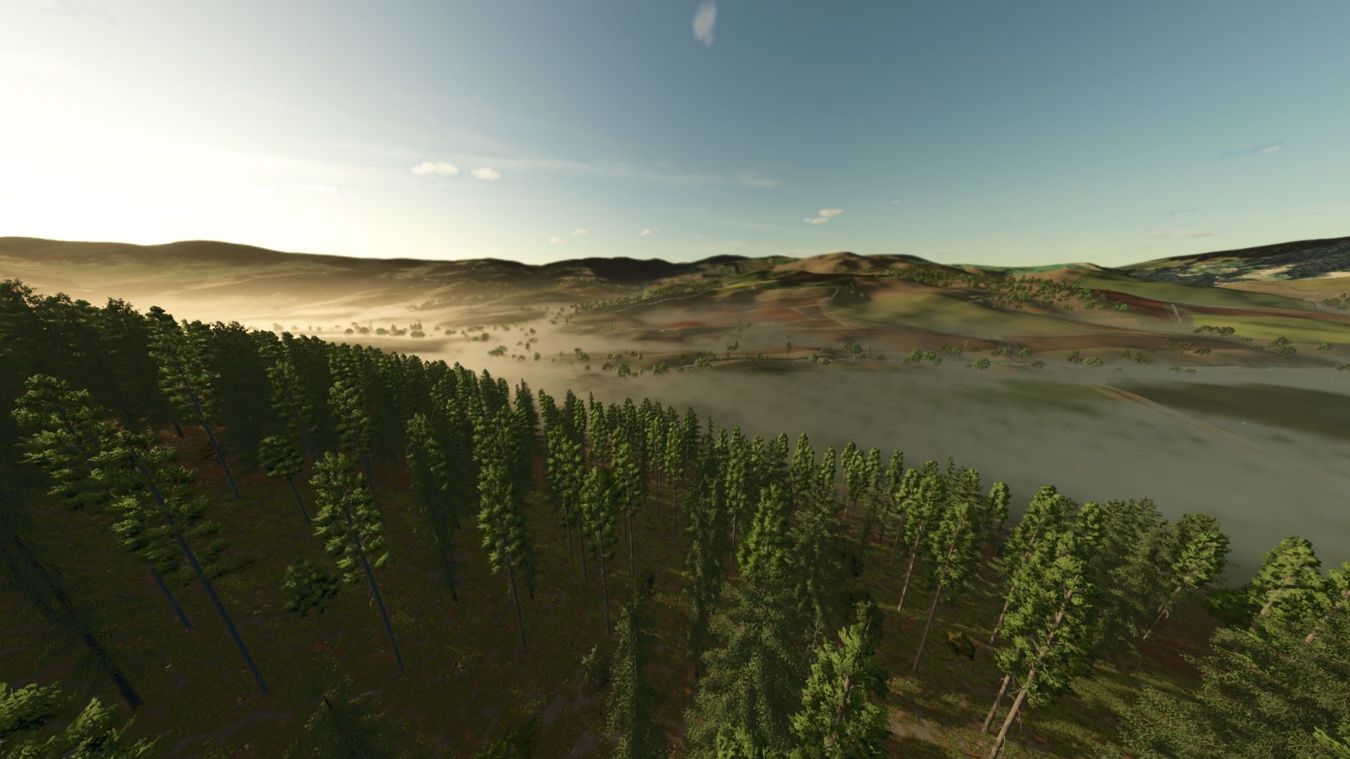 Accurate to life terrain and roads, 60ish fields ranging from 3 acres to 85 acres.