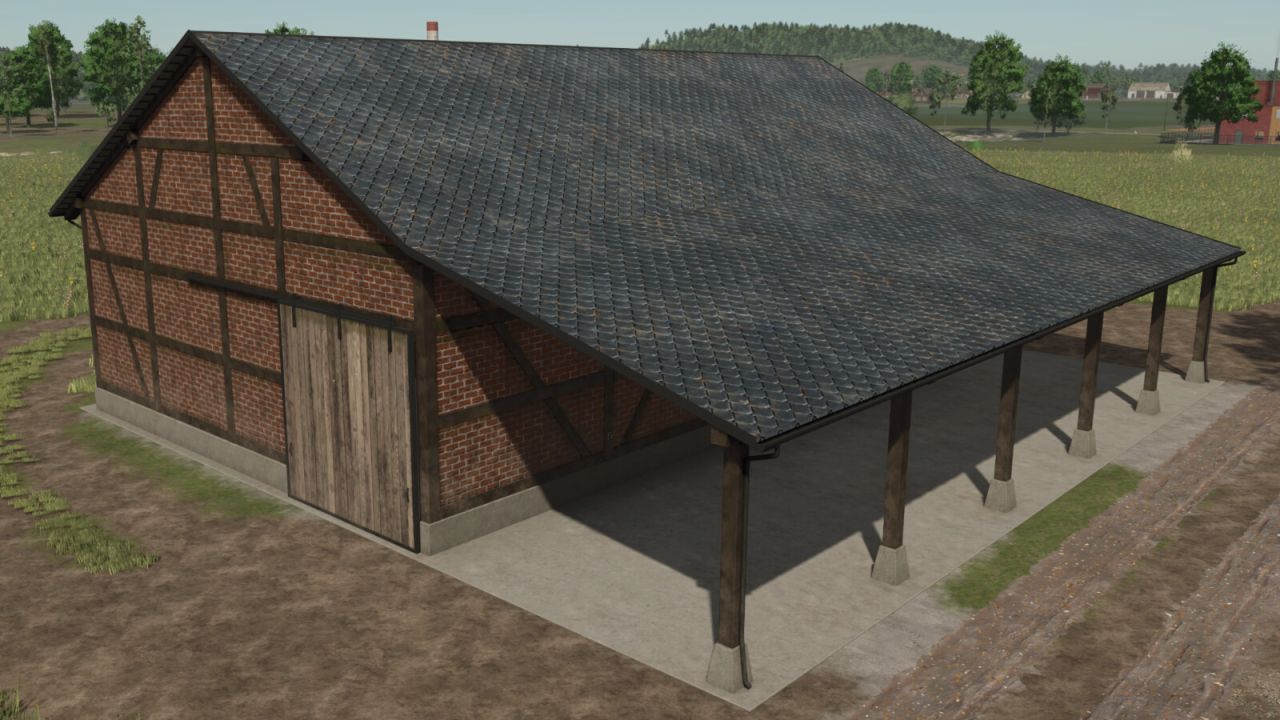 This half-timbered barn can be used as a storage for your farm equipment. You can choose between a plastered or brick version.