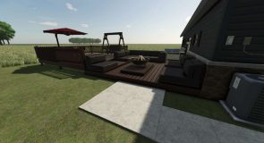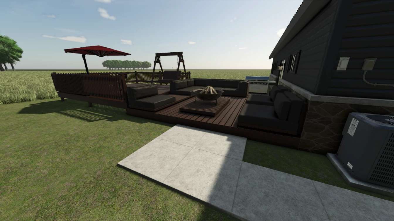 This is a detailed Farmhouse with Sleep and Wardrobe functions. This house contains 3 bedrooms and 2 full bathrooms along with a detached garage and a large back deck. Also the firepit out back is functional using a nearby trigger. Now available with color selectable options.
