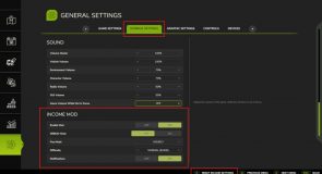 – Income Mod Settings (3 pages: basic, advanced, display/reset)
