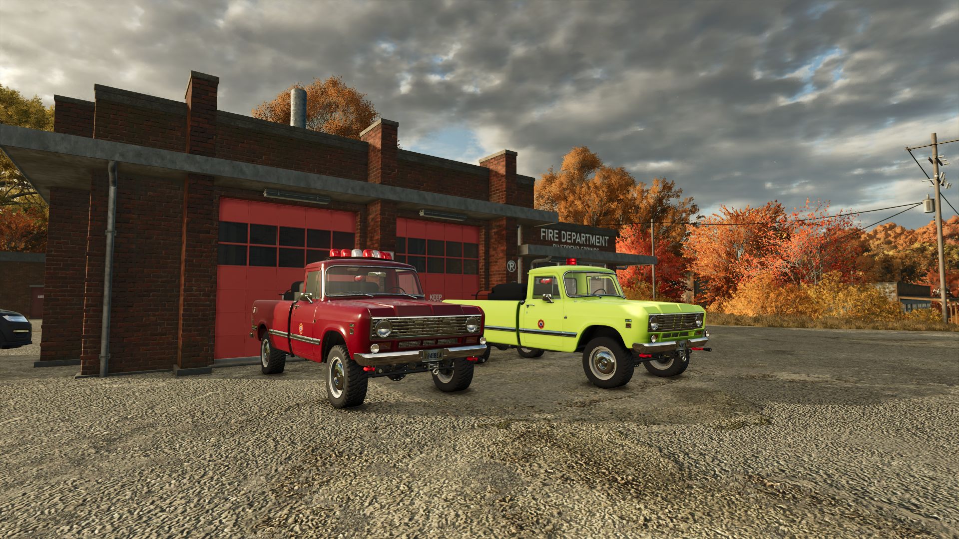 The International 200 Series Brush Truck is a highly customizable firefighting machine. This vehicle includes 8 Emergency Light configurations, 2 extra light options, decals, and bed accessories. The vehicle also includes functions for a winch, water carrier, hose nozzles, and a chainsaw attachment point in the rear bed.
