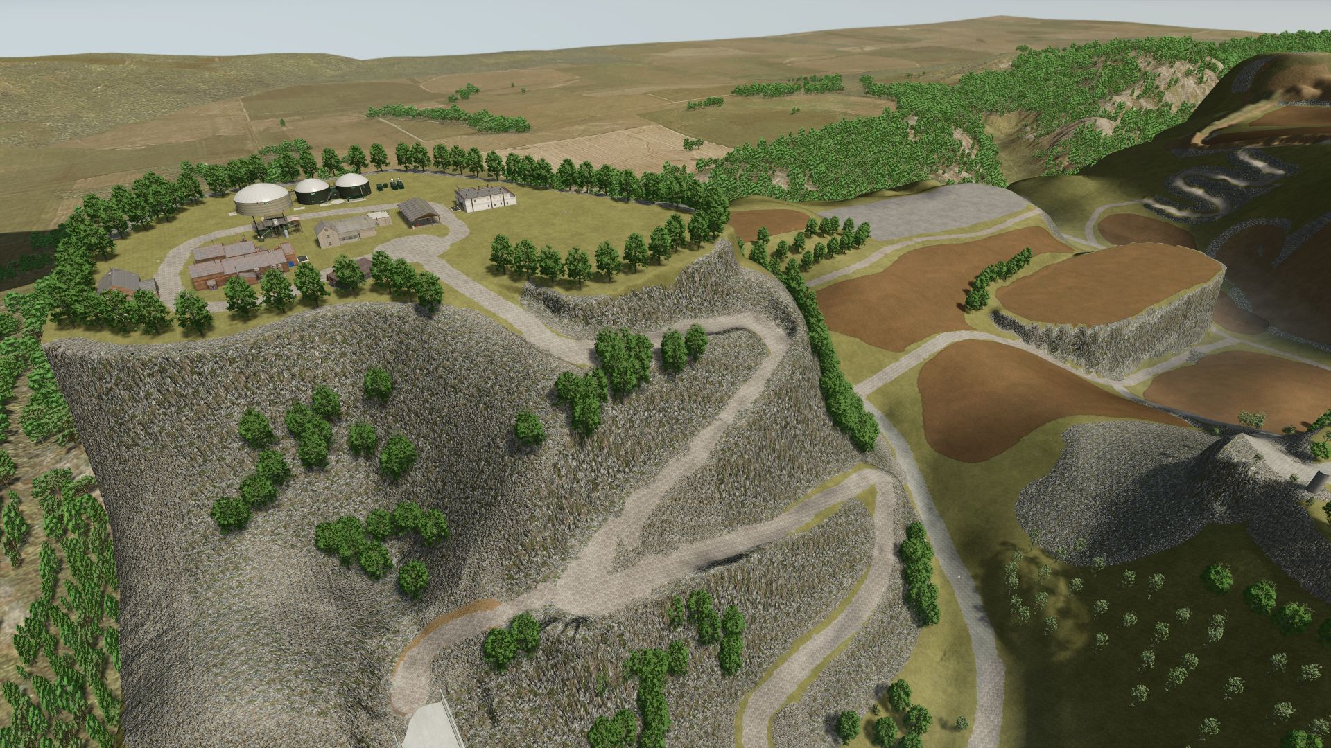 flat areas for building farms