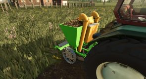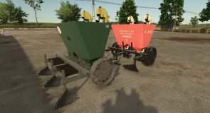 This is a conversion from FS22, although I added some of my own improvements. It has 6 color configurations, configuration of the model, platforms, fertilizer tank, stickers, and drive wheel settings. The modification also allows you to sit on the platform as a passenger (although the external camera has some imperfections). It has its own sounds. It has working animations of potato buckets and fertilizer dispenser drive. The planter does not need to be turned on to start it, just lower it. It is compatible with the More Realistic mod.