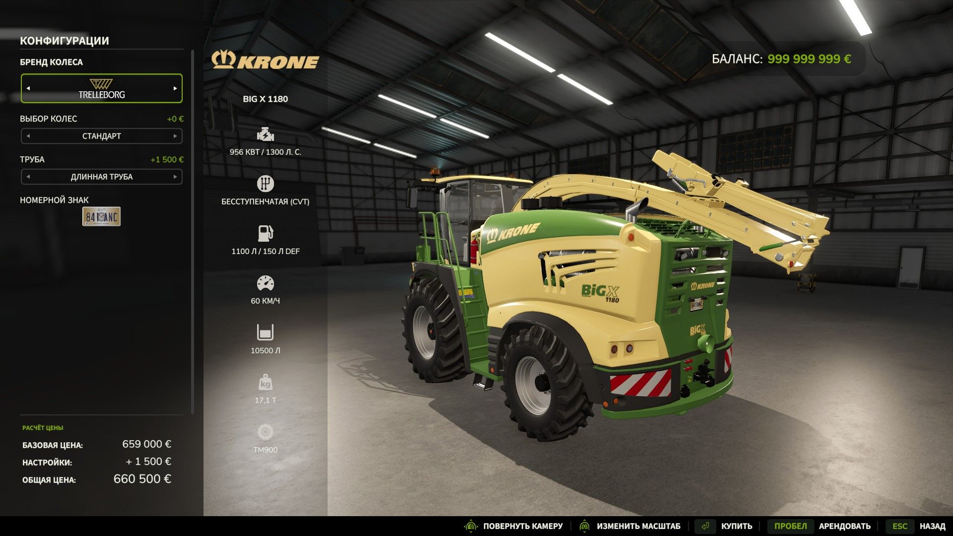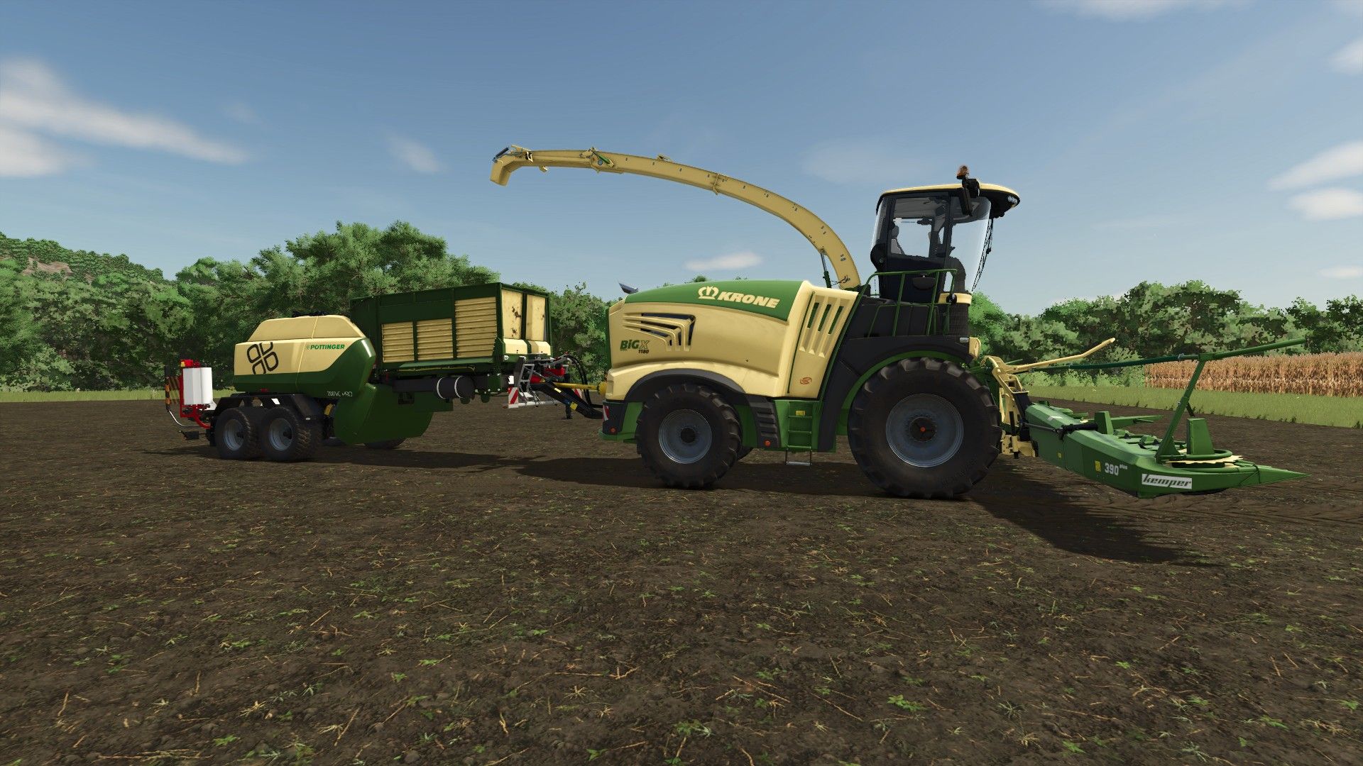 Krone Big X 1180 with corn harvester and VOM (power selection shaft)