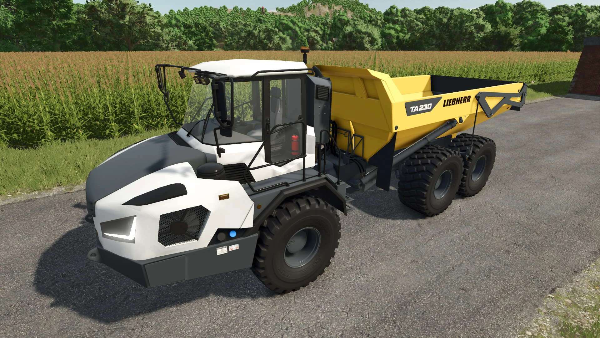 This is 2021-2025 Liebherr TA230 dump truck. It can be used to transport different crop types.