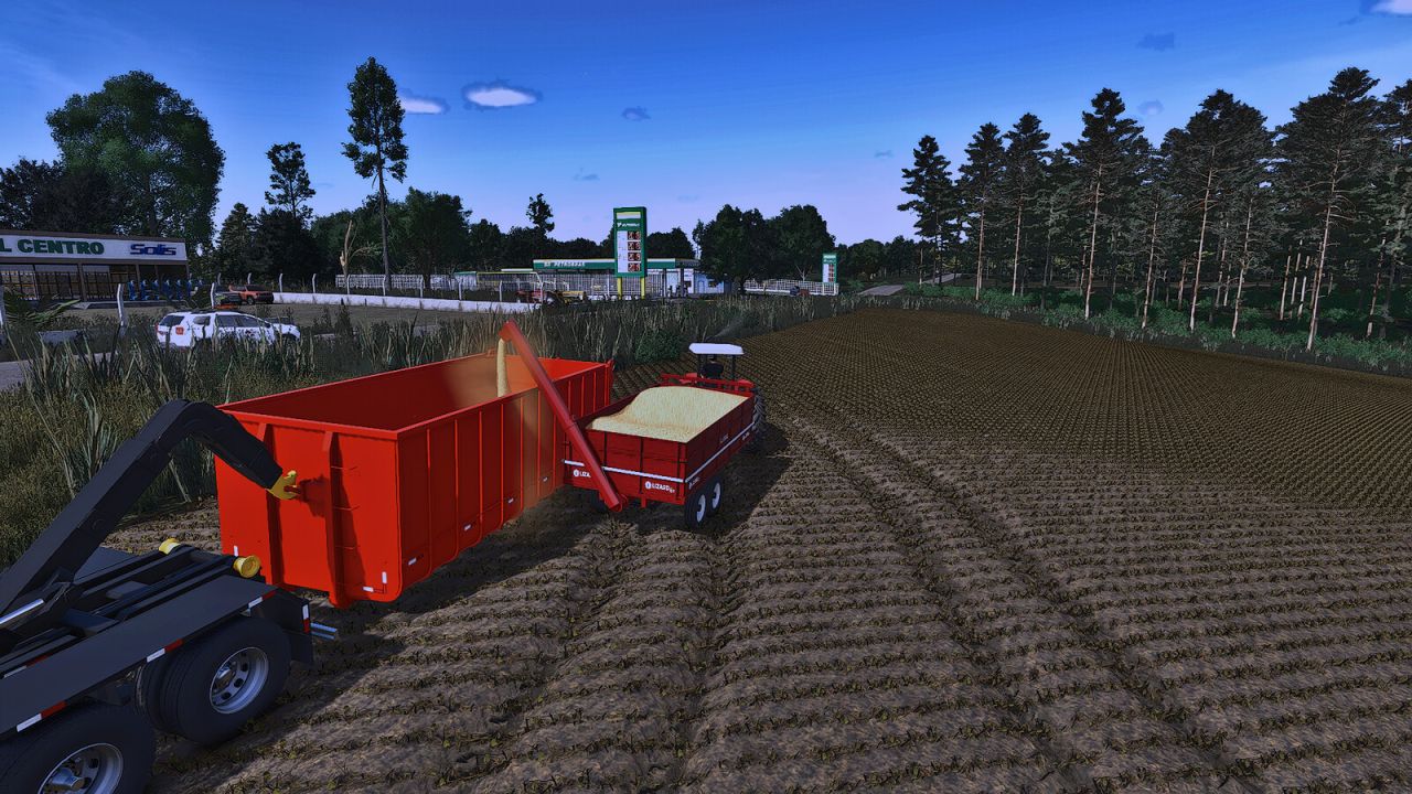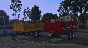 A trailer used by small farmers, consisting of a standard trailer and a screw trailer.