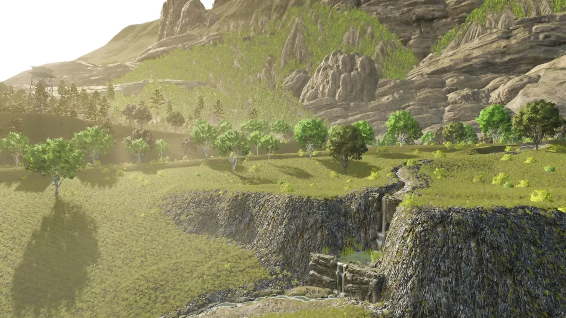 You start in a remote piece of land that is only equipped with gravel roads and simple rock paths, a merchant and a gas station have found their way into the area, the land is located in an unpopulated area which makes it cheap, but there are only a few possibilities to refine your goods (e.g. wheat -> flour).