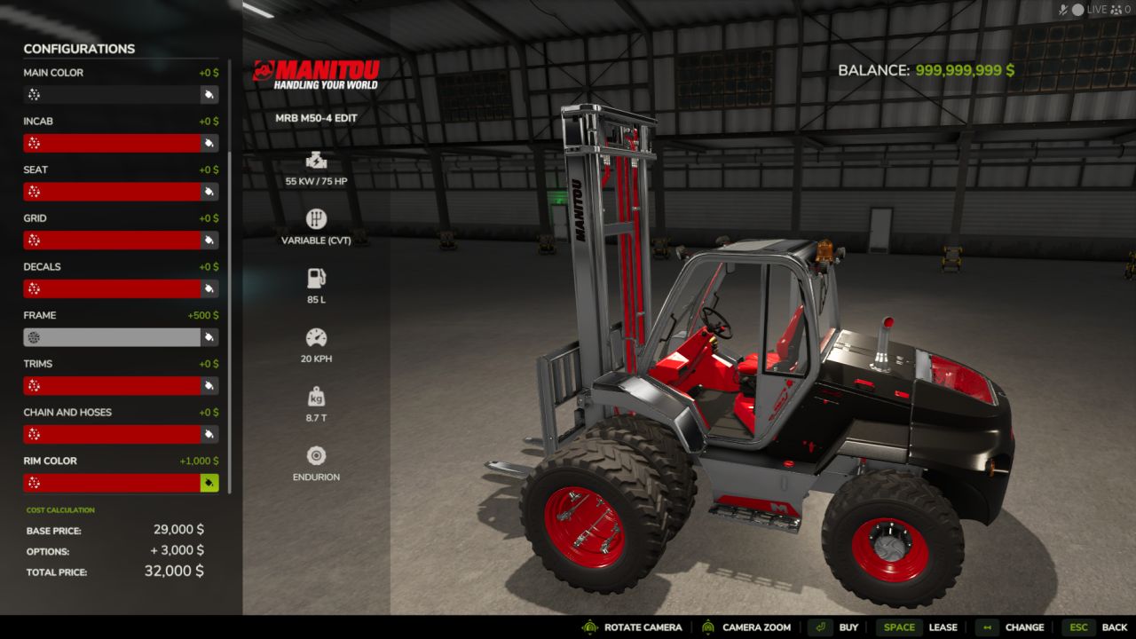 Added 2 Fork camera view , left side /right side and moved the in cab camera closer to windshield for better view of the forks.