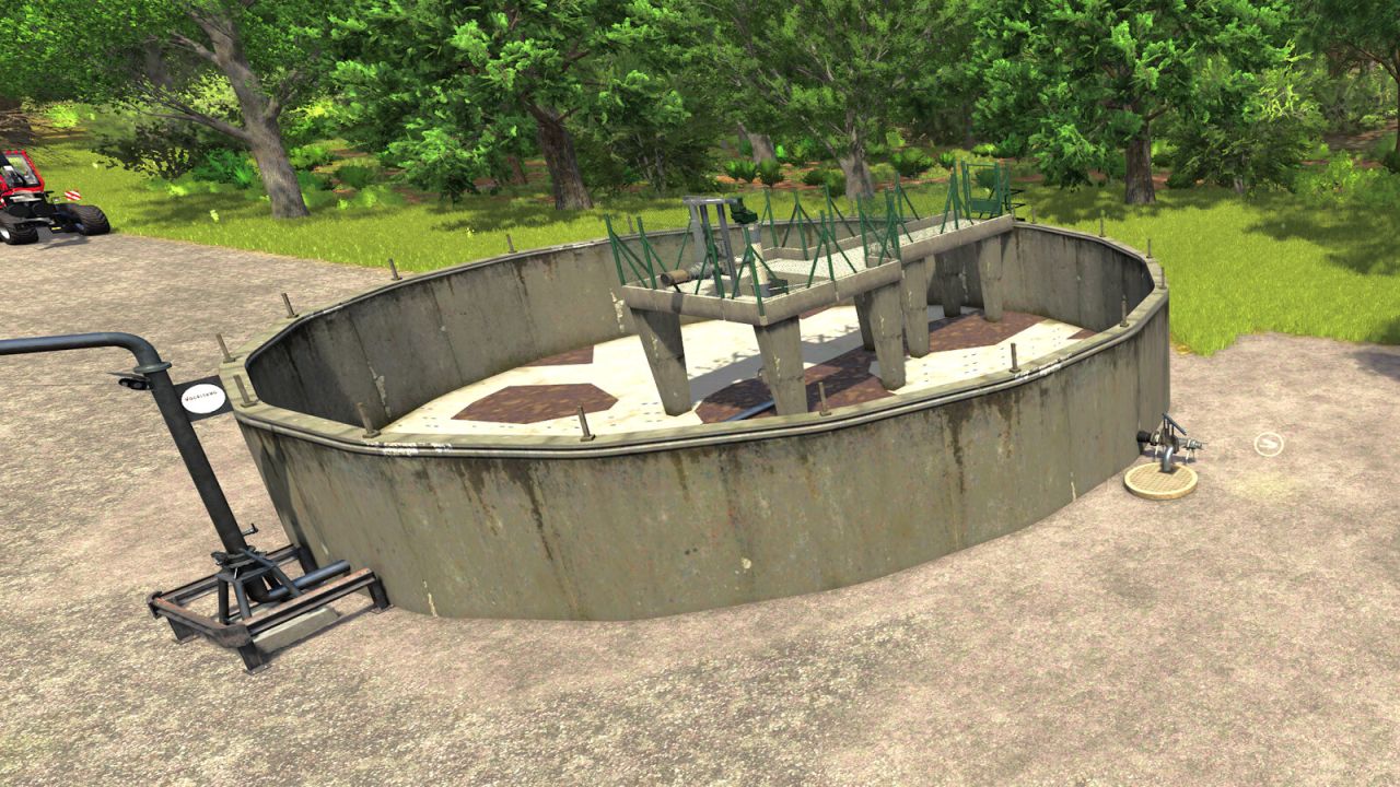 The manure bunker serves as a storage and distribution system for slurry on your farm. You can store slurry from your barns or other sources and use it later to fertilize your fields or transfer it to other production facilities.