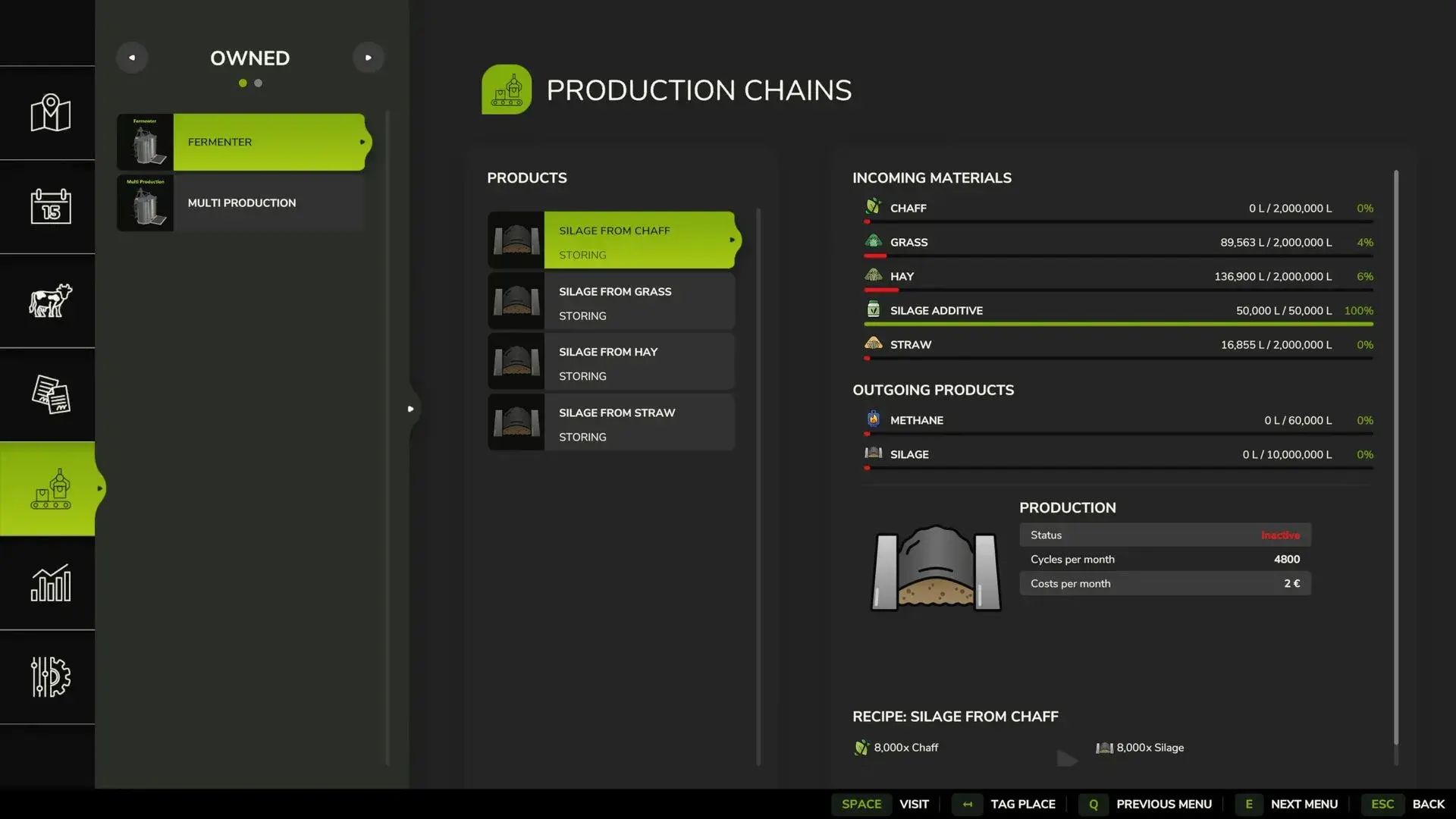 Note: In the fermenter there is a production branch for silage made of Lucerne,