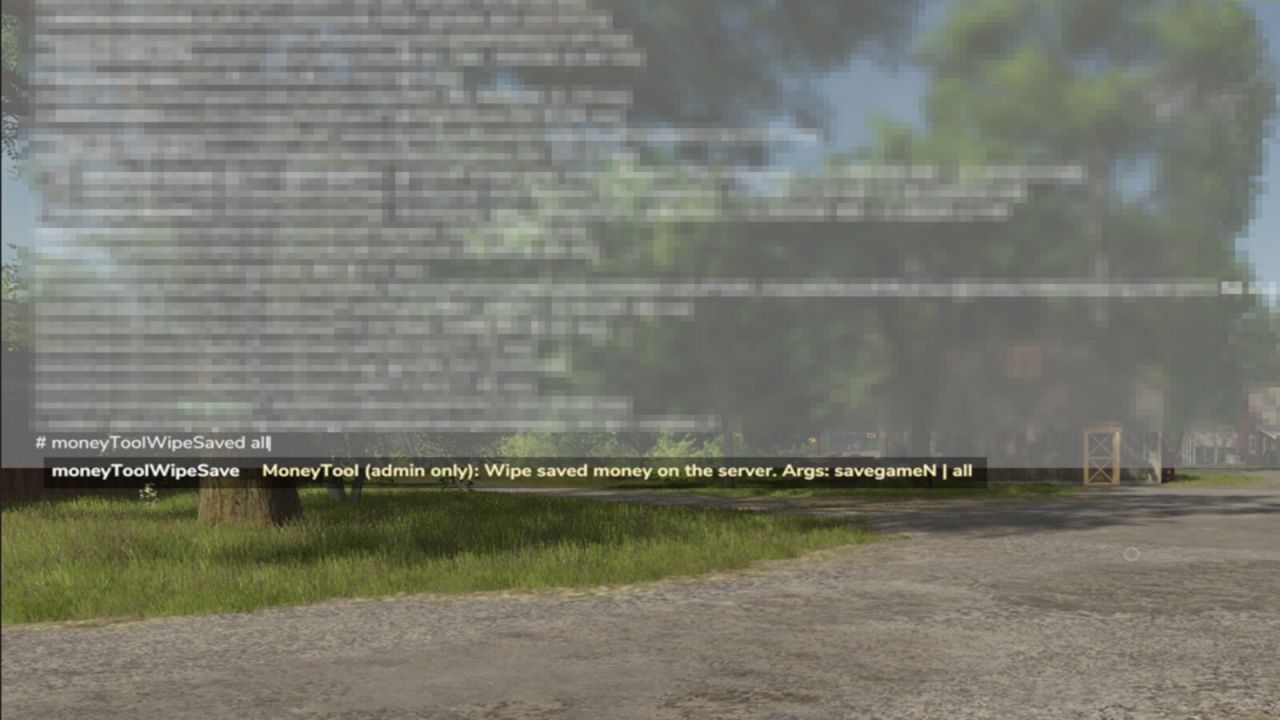 Example: moneyToolWipeSave savegame10 will only clear saved money for that save. You can specify any savegame from 1–20.