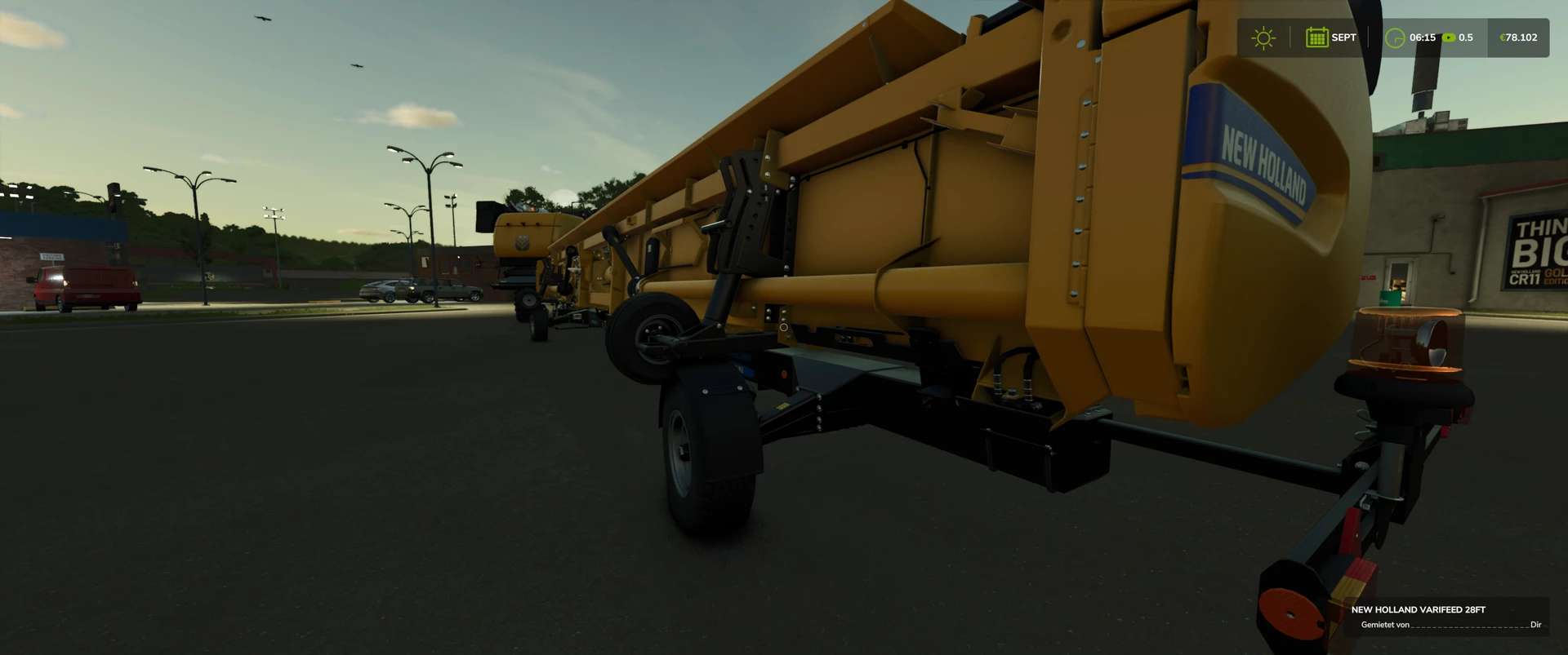 Configurable in the shop: New Holland logos, warning LEDs, additional LEDs on the sides, anti-Claas – John Deere – Case decals, DjB decals (give a discount), advertising on the roof (Häckterjäger, DjB [discount] Forbidden mod [discount]) or New Holland, tires, straw chopper width [between 9.15m and 12m], warning signs, pipe length [small, medium; Large], passenger, rotating beacon, tiger decal, door sticker, cooler, warning LEDs on the warning sign & size of the grain tank
